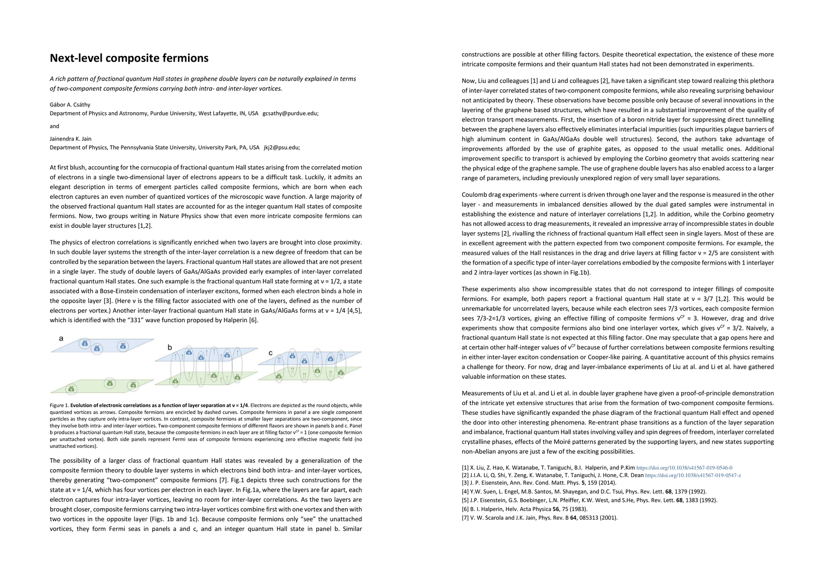 A rich pattern of fractional quantum Hall states in graphene double layers can be naturally explained in terms of two-component composite fermions carrying both intra- and inter-layer vortices.