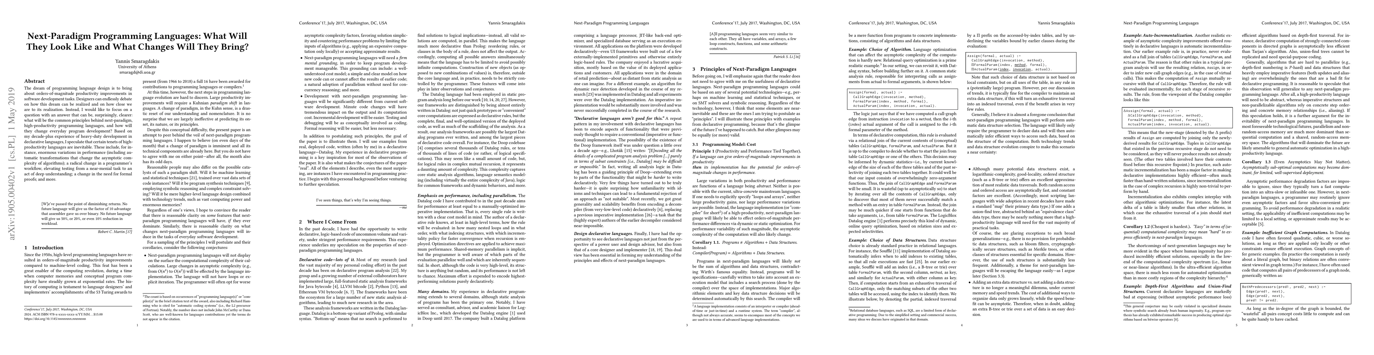 The dream of programming language design is to bring about orders-of-magnitude productivity improvements in software development tasks. Designers can endlessly debate on how this dream can be realized and on how close we are to its realization. Instead, I would like to focus on a question with an answer that can be, surprisingly, clearer: what will be the common principles behind next-paradigm, high-productivity programming languages, and how will they change everyday program development? Based on my decade-plus experience of heavy-duty development in declarative languages, I speculate that certain tenets of high-productivity languages are inevitable. These include, for instance, enormous variations in performance (including automatic transformations that change the asymptotic complexity of algorithms); a radical change in a programmer's workflow, elevating testing from a near-menial task to an act of deep understanding; a change in the need for formal proofs; and more.