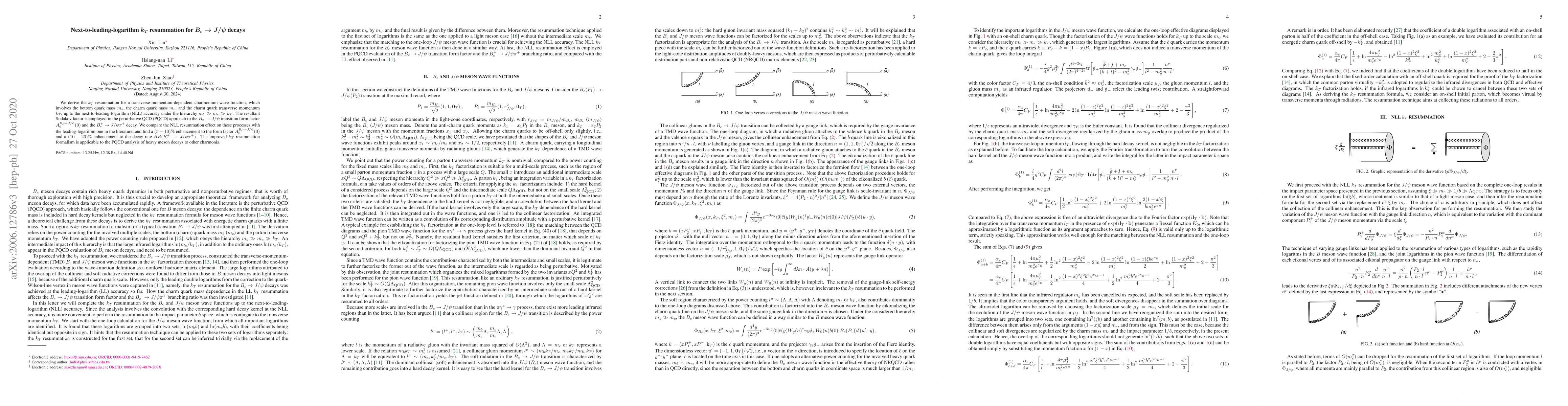 We derive the $k_T$ resummation for a transverse-momentum-dependent charmonium wave function, which involves the bottom quark mass $m_b$, the charm quark mass $m_c$, and the charm quark transverse momentum $k_T$, up to the next-to-leading-logarithm (NLL) accuracy under the hierarchy $m_b\gg m_c \gg k_T$. The resultant Sudakov factor is employed in the perutrbative QCD (PQCD) approach to the $B_c\to J/\psi$ transition form factor $A_0^{B_c \to J/\psi}(0)$ and the $B_c^+ \to J/\psi \pi^+$ decay. We compare the NLL resummation effect on these processes with the leading-logarithm one in the literature, and find a $(5-10)\%$ enhancement to the form factor $A_0^{B_c \to J/\psi}(0)$ and a $(10-20)\%$ enhancement to the decay rate ${\rm BR}(B_c^+ \to J/\psi \pi^+)$. The improved $k_T$ resummation formalism is applicable to the PQCD analysis of heavy meson decays to other charmonia.