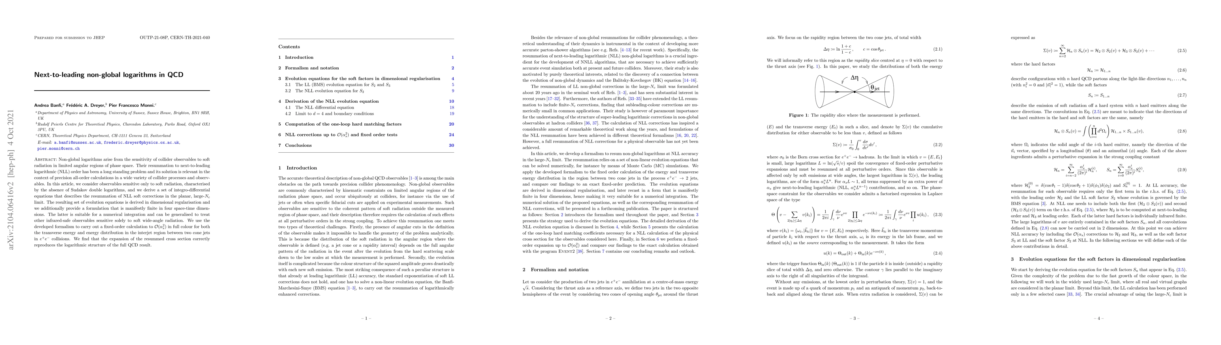 The formalism for resummation of next-to-leading non-global logarithms in QCD, including derived evolution equations and a finite-dimensional formulation suitable for numerical integration.
