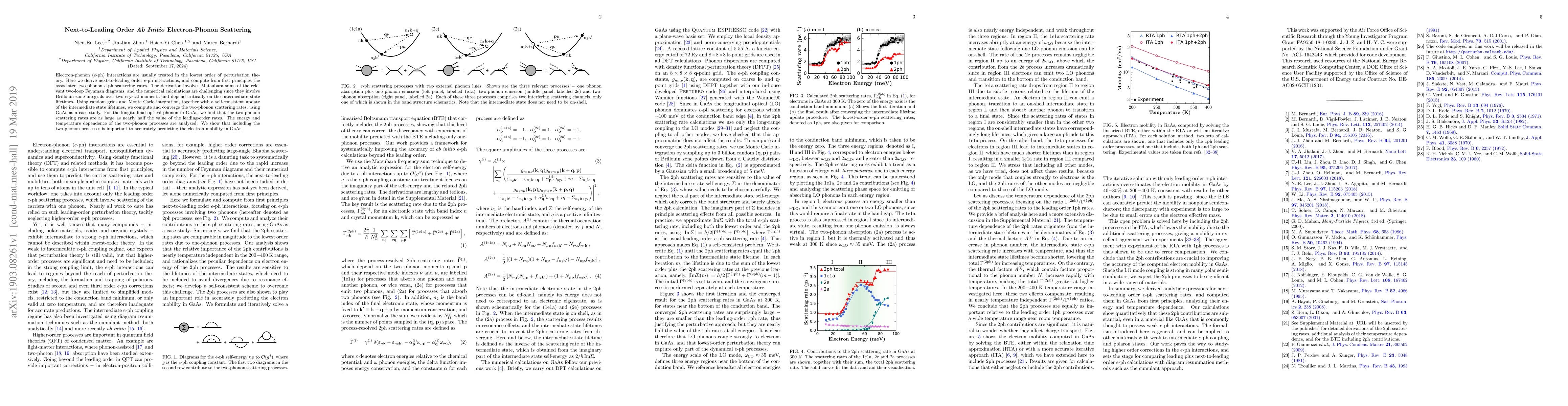This paper derives next-to-leading order electron-phonon interactions and computes two-phonon scattering rates from first principles, finding significant contributions in GaAs. Inclusion of these two-phonon processes is crucial for accurate electron mobility predictions.