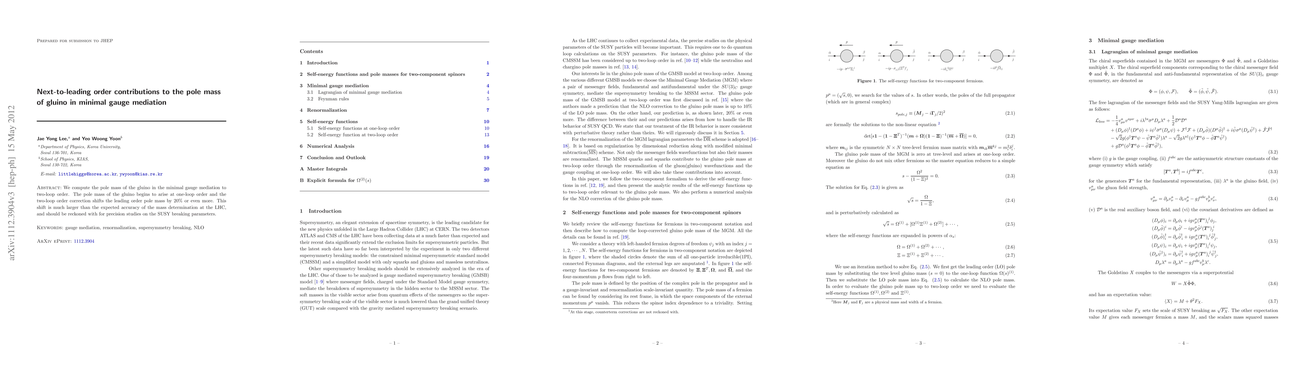 We compute the pole mass of the gluino in the minimal gauge mediation to two-loop order. The pole mass of the gluino begins to arise at one-loop order and the two-loop order correction shifts the leading order pole mass by 20% or even more. This shift is much larger than the expected accuracy of the mass determination at the LHC, and should be reckoned with for precision studies on the SUSY breaking parameters.