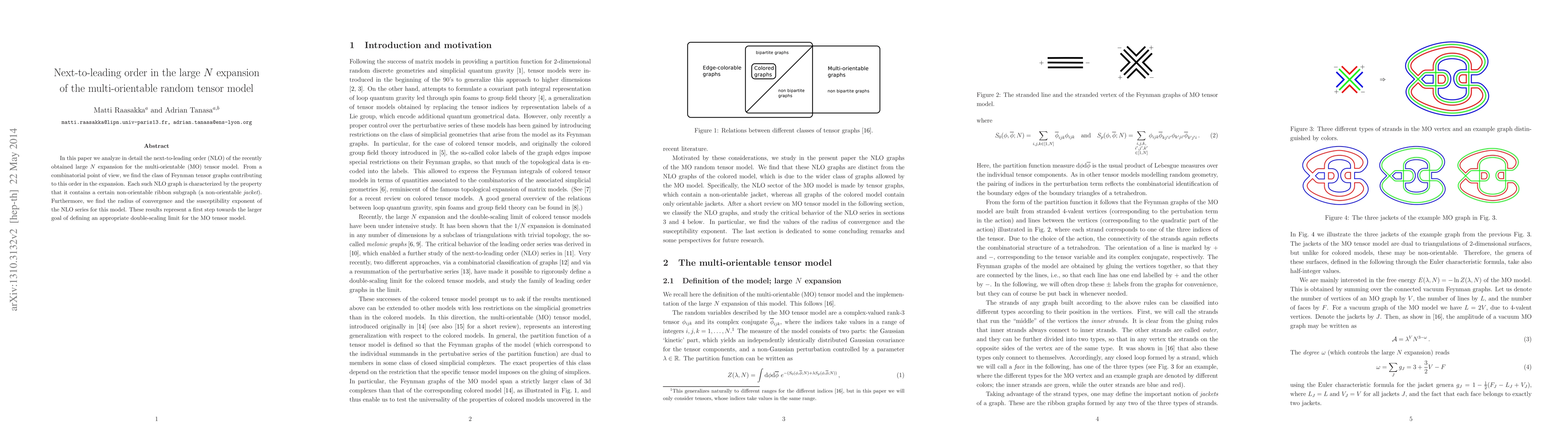 This paper investigates the next-to-leading order (NLO) of the large $N$ expansion for multi-orientable tensor models, identifying the contributing Feynman tensor graphs that contain non-orientable ribbon subgraphs. It also determines the radius of convergence and susceptibility exponent for the NLO series, laying groundwork for defining a double-scaling limit.