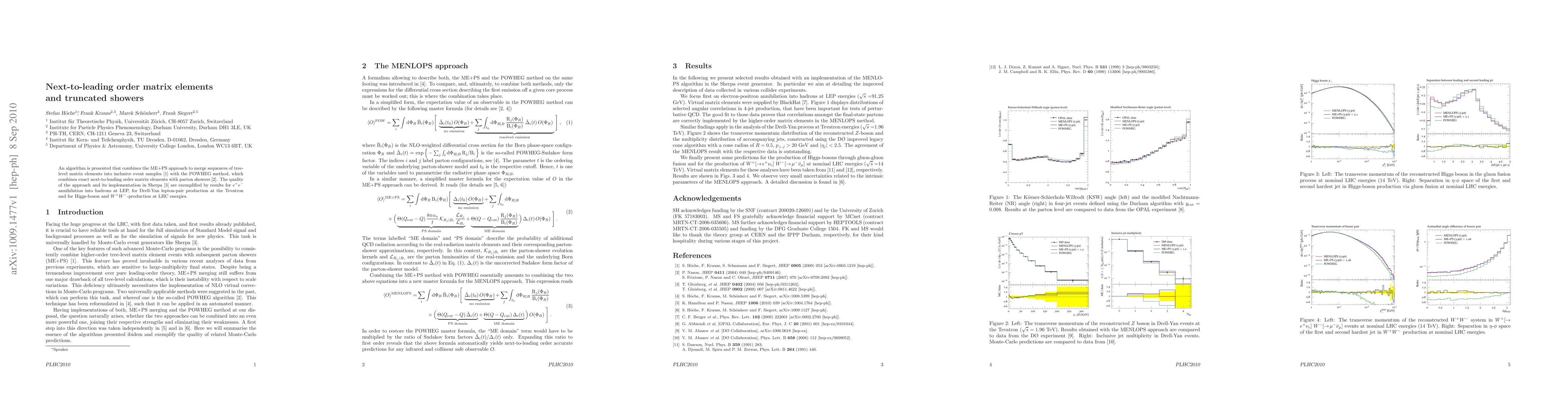This paper introduces an algorithm merging tree-level matrix elements with parton showers using the ME+PS approach and the POWHEG method for next-to-leading order calculations, demonstrating its effectiveness through results on various particle production processes at LEP, Tevatron, and LHC.