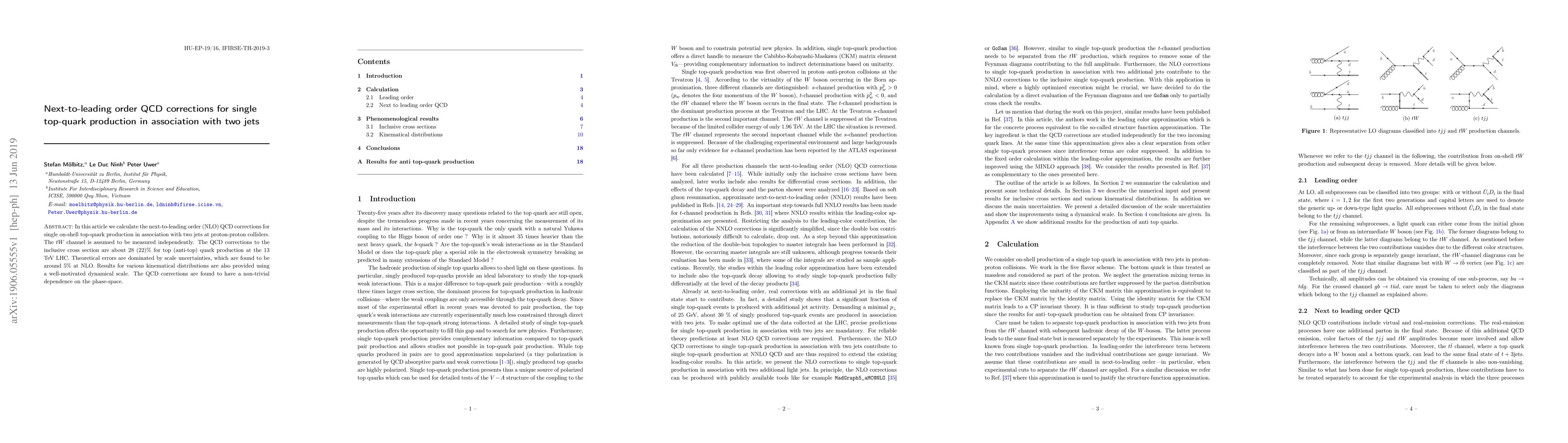 In this article we calculate the next-to-leading order (NLO) QCD corrections for single on-shell top-quark production in association with two jets at proton-proton colliders. The tW channel is assumed to be measured independently. The QCD corrections to the inclusive cross section are about 28 (22)\% for top (anti-top) quark production at the 13 TeV LHC. Theoretical errors are dominated by scale uncertainties, which are found to be around 5\% at NLO. Results for various kinematical distributions are also provided using a well-motivated dynamical scale. The QCD corrections are found to have a non-trivial dependence on the phase-space.