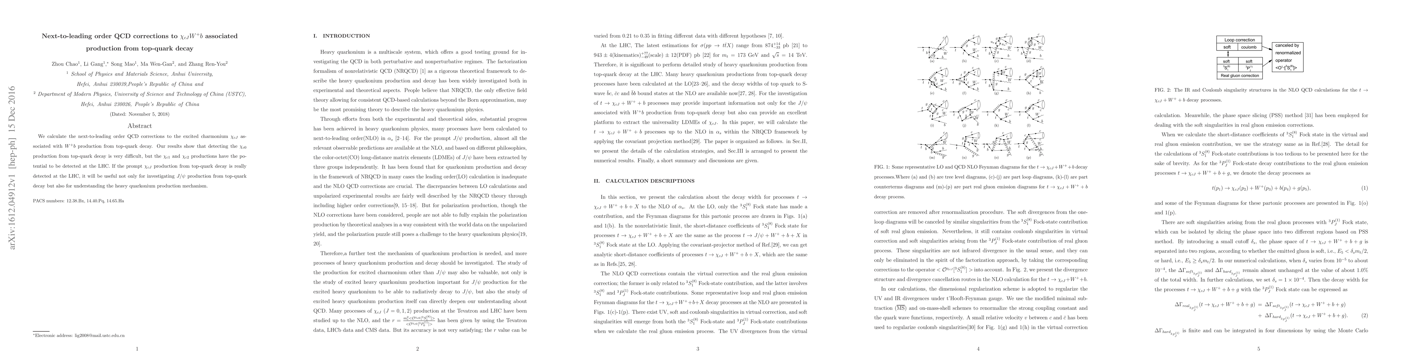 This paper calculates next-to-leading order QCD corrections for $\chi_{cJ}$ associated production with $W^+ b$ from top-quark decay, finding that $\chi_{c1}$ and $\chi_{c2}$ could potentially be detected at the LHC, while $\chi_{c0}$ detection is challenging. Such detections would enhance our understanding of heavy quarkonium production mechanisms.