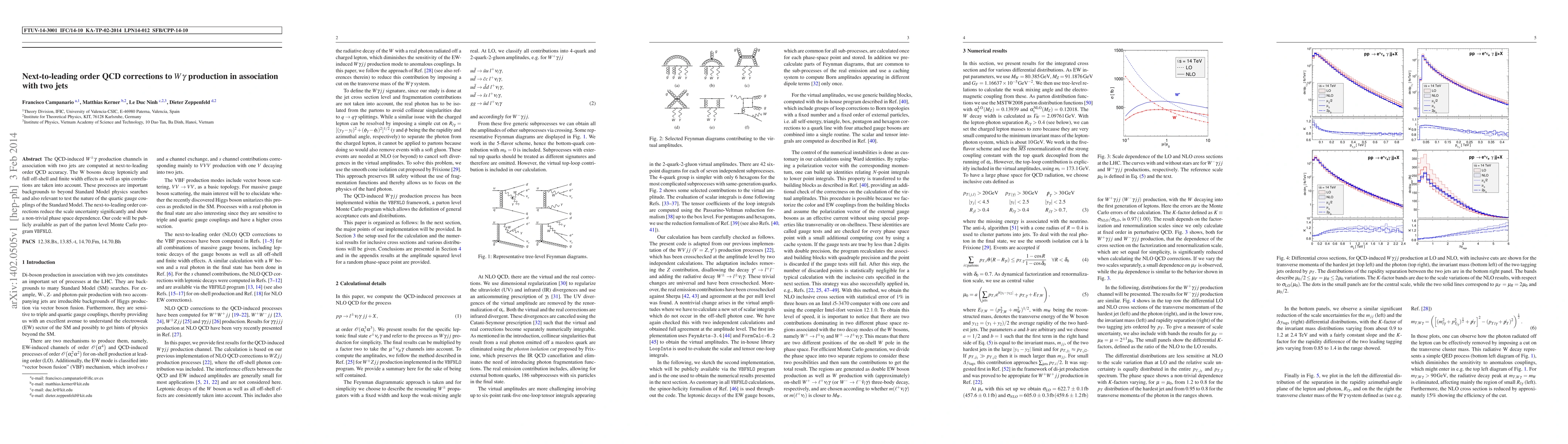 This paper computes next-to-leading order QCD corrections for $W^\pm \gamma$ production in association with two jets, considering full off-shell effects and spin correlations. These corrections are crucial for reducing scale uncertainties and understanding backgrounds in beyond Standard Model physics searches, with the results available via the VBFNLO Monte Carlo program.