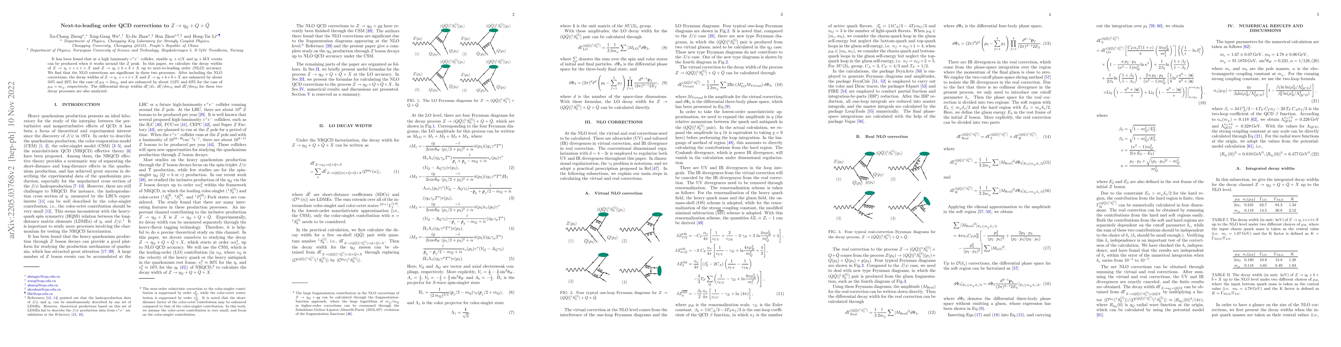 This paper calculates the next-to-leading order (NLO) QCD corrections for the decay widths of $Z \to \eta_c+c+\bar{c}+X$ and $Z \to \eta_b+b+\bar{b}+X$, finding significant enhancements of about $37\%$ and $28\%$, respectively, after including NLO corrections. The study also analyzes differential decay widths.