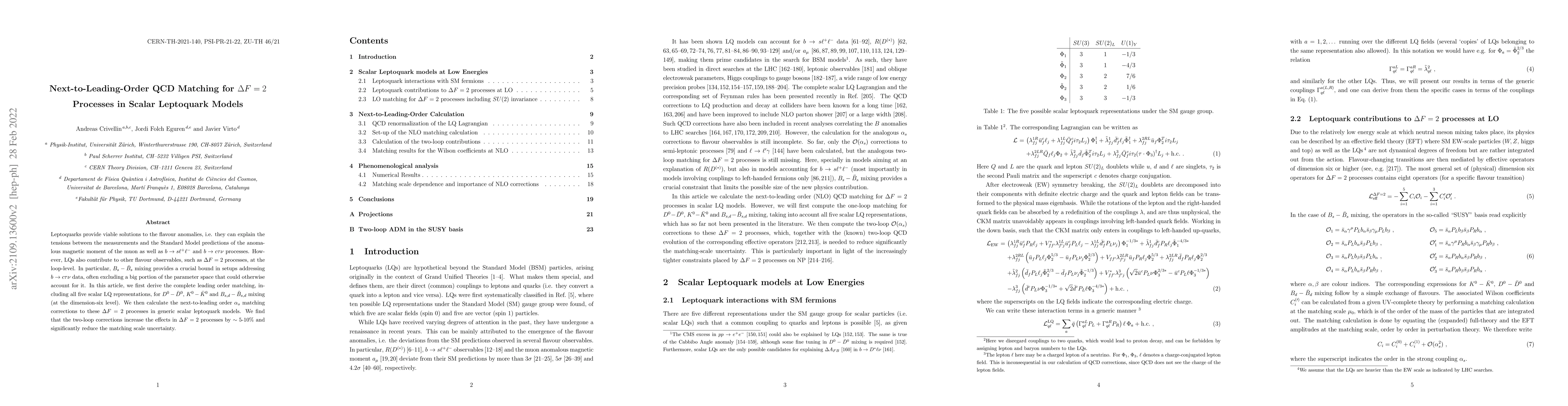 Leptoquarks provide viable solutions to the flavour anomalies, i.e. they can explain the tensions between the measurements and the Standard Model predictions of the anomalous magnetic moment of the muon as well as $b\to s\ell^+\ell^-$ and $b\to c\tau\nu$ processes. However, leptoquarks also contribute to other flavour observables, such as $\Delta F=2$ processes, at the loop-level. In particular, $B_s-\bar B_s$ mixing provides a crucial bound in setups addressing $b\to c\tau\nu$ data, often excluding a big portion of the parameter space that could otherwise account for it. In this article, we first derive the complete leading order matching, including all five scalar LQ representations, for $D^0-\bar D^0$, $K^0-\bar K^0$ and $B_{s,d}-\bar B_{s,d}$ mixing (at the dimension-six level). We then calculate the next-to-leading order $\alpha_s$ matching corrections to these $\Delta F=2$ processes in generic scalar leptoquark models. We find that the two-loop corrections increase the effects in $\Delta F=2$ processes by $\sim 5$-$10\%$ and significantly reduce the matching scale uncertainty.