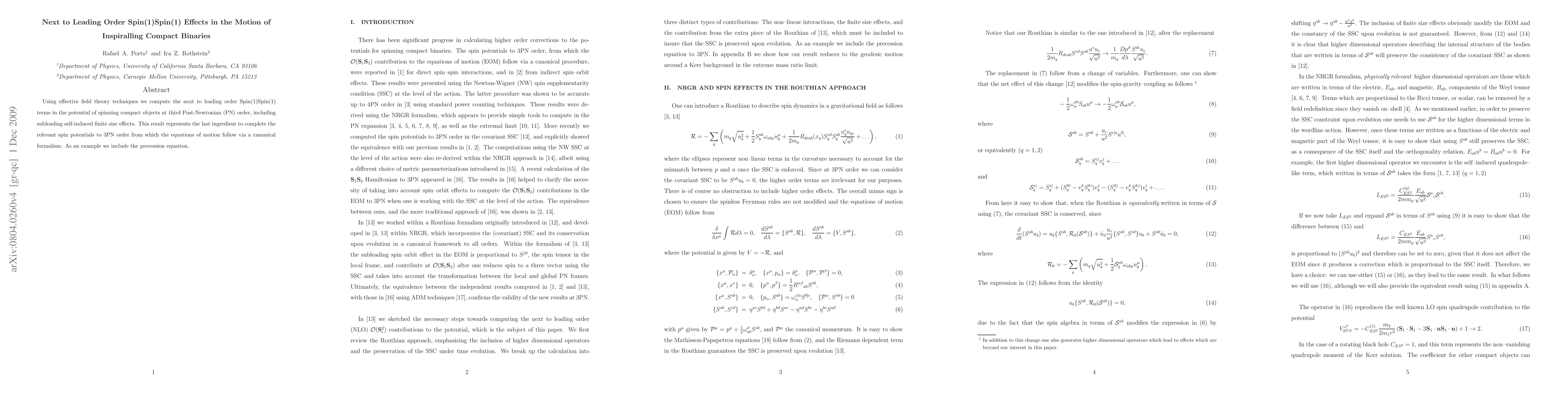 This paper computes the next-to-leading order Spin(1)Spin(1) terms in the potential of spinning compact binaries at third Post-Newtonian order, completing the spin potentials to 3PN order and providing the final ingredient for the equations of motion. An example of the precession equation is also included.