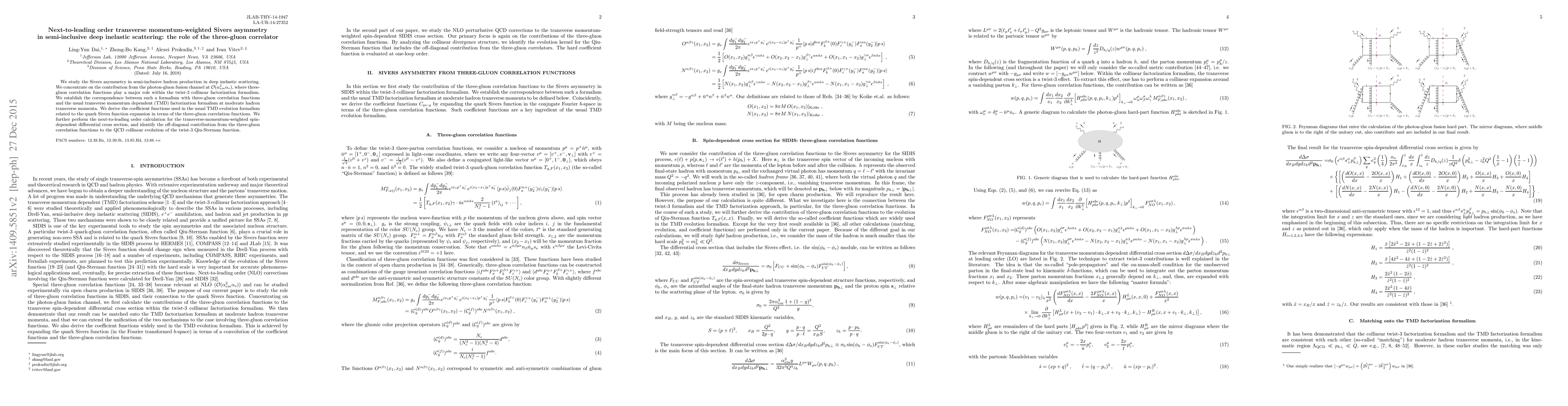 This paper investigates the Sivers asymmetry in semi-inclusive deep inelastic scattering, focusing on the photon-gluon fusion channel at next-to-leading order. It establishes a connection between the twist-3 collinear factorization formalism involving three-gluon correlators and the transverse momentum dependent formalism, deriving the coefficient functions for the latter.