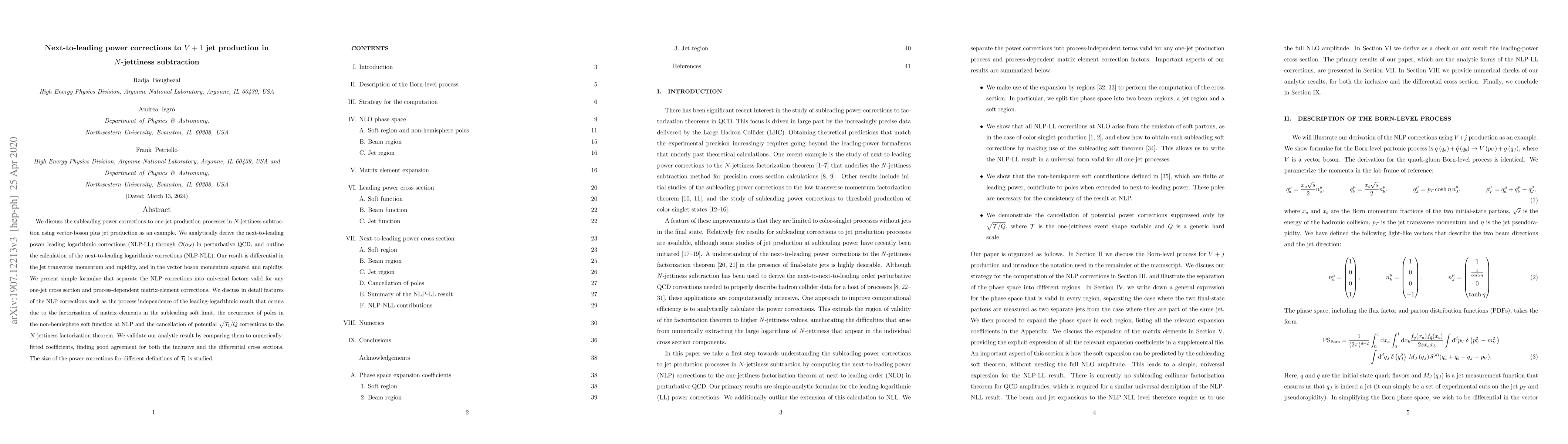 Researchers analyzed power corrections to $V+1$ jet production in N-jettiness subtraction, deriving next-to-leading logarithmic corrections through perturbative QCD and validating their accuracy.