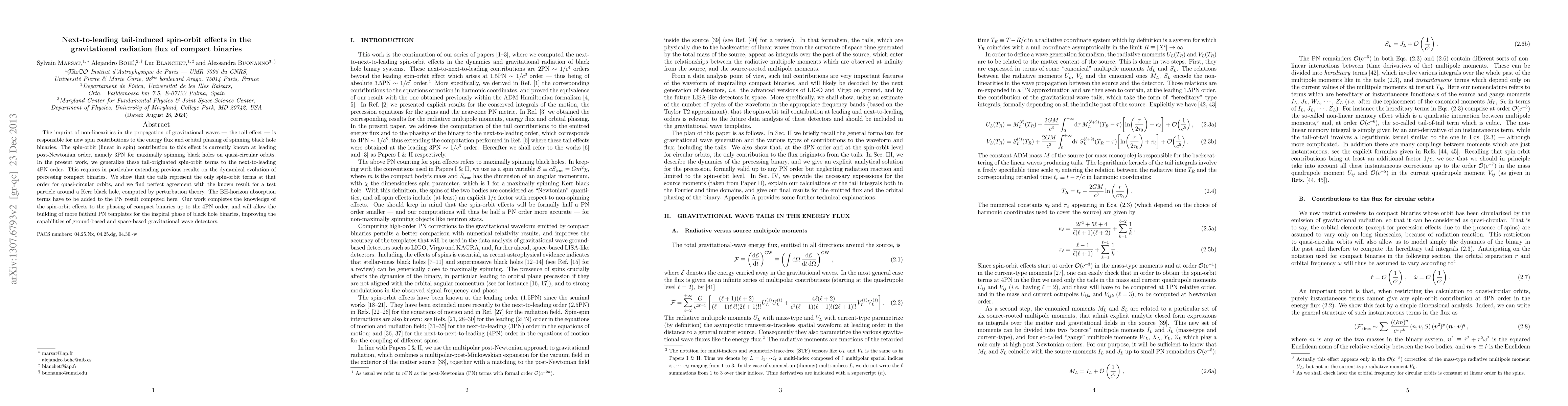 This paper generalizes next-to-leading order spin-orbit effects in gravitational radiation from compact binaries to the 4PN order, revealing the tail effect's contribution to the energy flux and orbital phasing. The results enhance the accuracy of post-Newtonian templates for gravitational wave detectors.