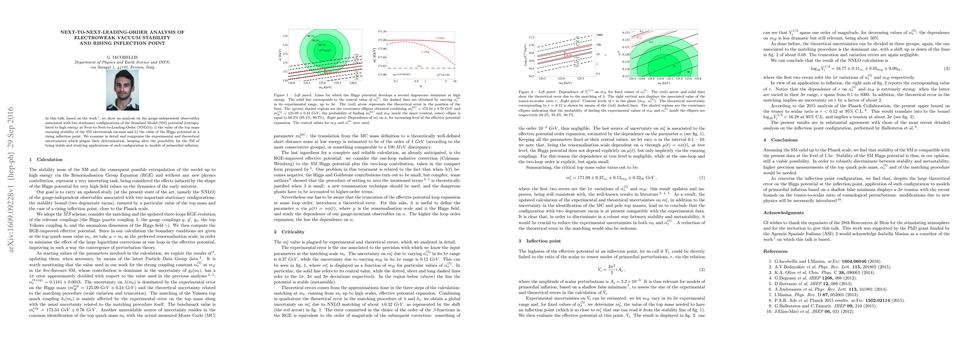 We show an analysis on the gauge-independent observables associated with two stationary configurations of the Standard Model (SM) potential (extrapolated to high energy at Next-to-Next-to-Leading-Order (NNLO)): i) the value of the top mass ensuring stability of the SM electroweak vacuum and ii) the value of the Higgs potential at a rising inflection point. We examine in detail and reappraise the experimental and theoretical uncertainties which plague their determination, keeping alive the possibility for the SM of being stable and studying applications of such configuration to models of primordial inflation.