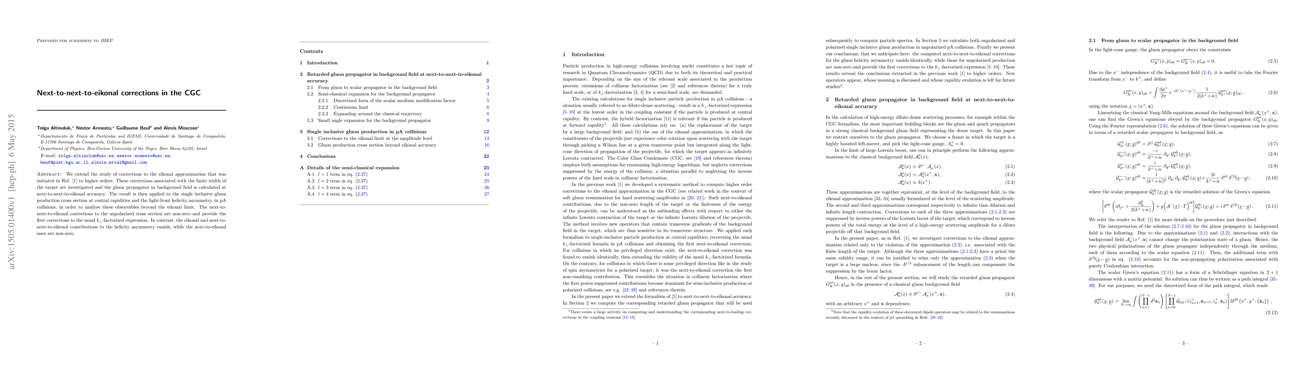 We extend the study of corrections to the eikonal approximation that was initiated in Ref. \cite{Altinoluk:2014oxa} to higher orders. These corrections associated with the finite width of the target are investigated and the gluon propagator in background field is calculated at next-to-next-to-eikonal accuracy. The result is then applied to the single inclusive gluon production cross section at central rapidities and the light-front helicity asymmetry, in pA collisions, in order to analyse these observables beyond the eikonal limit. The next-to-next-to-eikonal corrections to the unpolarized cross section are non-zero and provide the first corrections to the usual $k_\perp$-factorized expression. In contrast, the eikonal and next-to-next-to-eikonal contributions to the helicity asymmetry vanish, while the next-to-eikonal ones are non-zero.