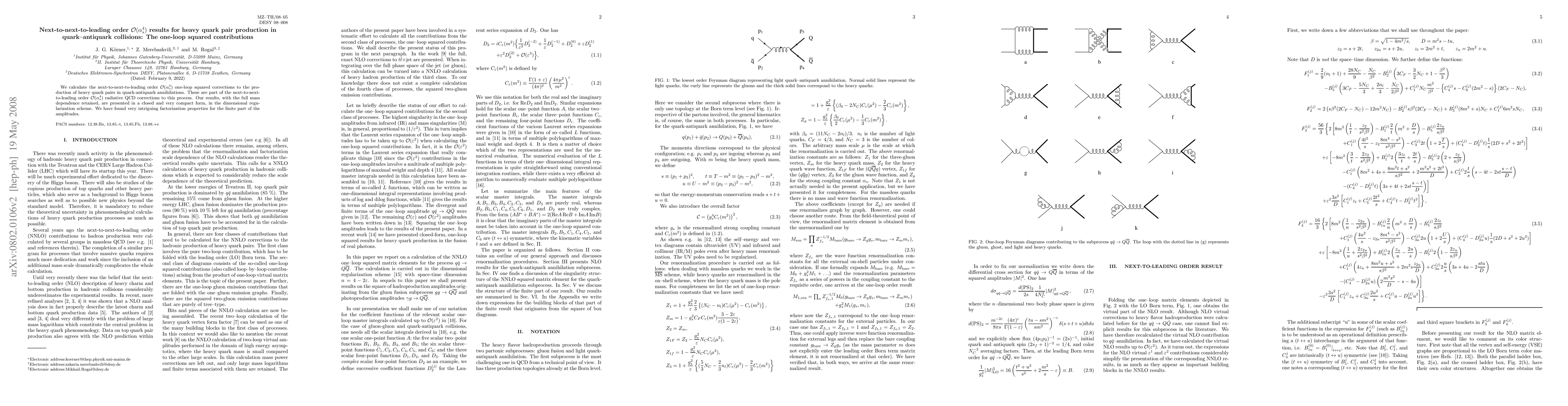 We calculate the next-to-next-to-leading order ${\cal O}(\alpha_s^4)$ one-loop squared corrections to the production of heavy quark pairs in quark-antiquark annihilations. These are part of the next-to-next-to-leading order ${\cal O}(\alpha_s^4)$ radiative QCD corrections to this process. Our results, with the full mass dependence retained, are presented in a closed and very compact form, in the dimensional regularization scheme. We have found very intriguing factorization properties for the finite part of the amplitudes.