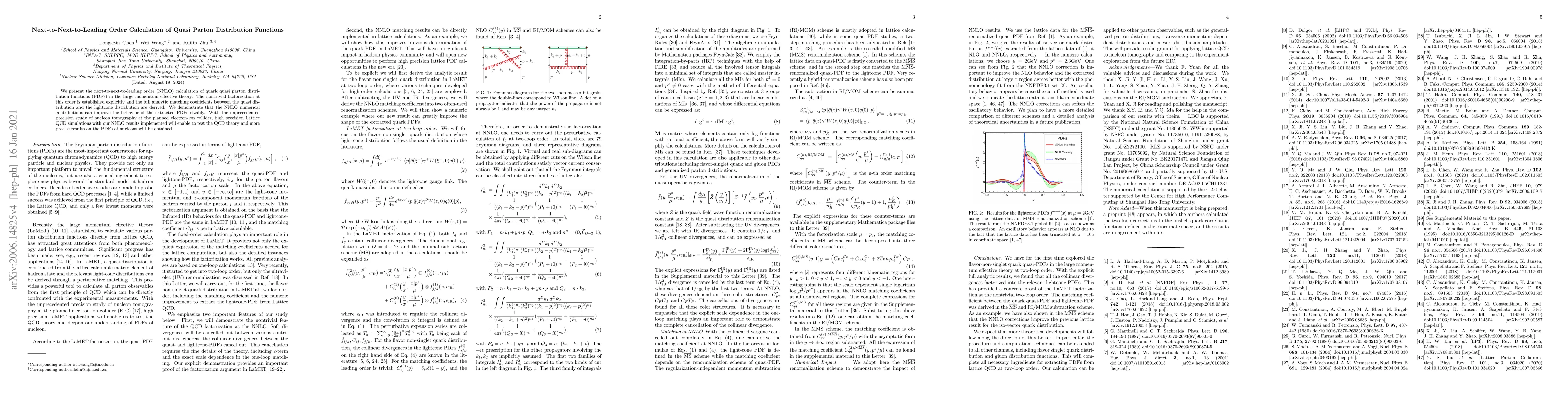 This paper presents NNLO calculations for quark quasi parton distribution functions, establishing nontrivial factorization and deriving full analytic matching coefficients. The NNLO contributions significantly improve the behavior of extracted PDFs, promising more precise results for nucleon tomography and testing QCD theory with future high-precision lattice QCD simulations.