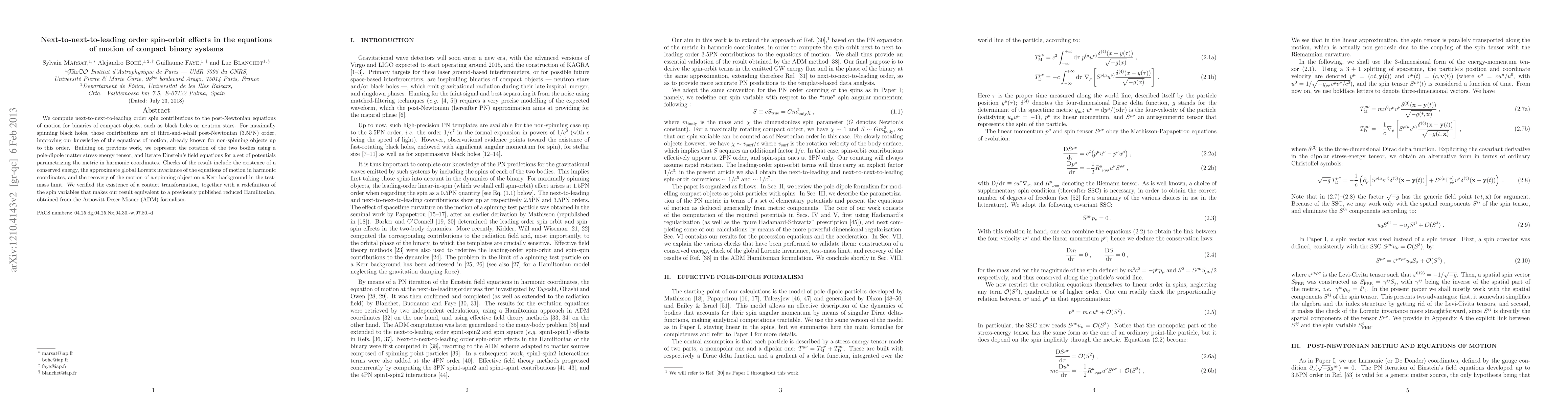 This paper computes next-to-next-to-leading order spin-orbit contributions to the post-Newtonian equations of motion for compact binary systems, improving the 3.5PN order knowledge for maximally spinning black holes. The authors use a pole-dipole matter stress-energy tensor and verify their results through conserved energy, Lorentz invariance, and recovery of spinning object motion on a Kerr background.