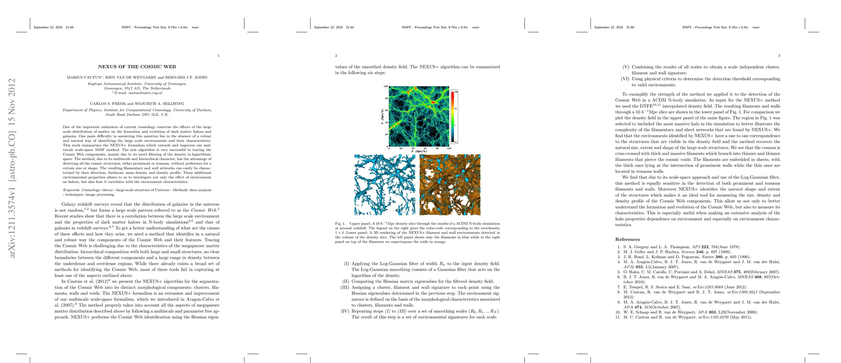 One of the important unknowns of current cosmology concerns the effects of the large scale distribution of matter on the formation and evolution of dark matter haloes and galaxies. One main difficulty in answering this question lies in the absence of a robust and natural way of identifying the large scale environments and their characteristics. This work summarizes the NEXUS+ formalism which extends and improves our multiscale scale-space MMF method. The new algorithm is very successful in tracing the Cosmic Web components, mainly due to its novel filtering of the density in logarithmic space. The method, due to its multiscale and hierarchical character, has the advantage of detecting all the cosmic structures, either prominent or tenuous, without preference for a certain size or shape. The resulting filamentary and wall networks can easily be characterized by their direction, thickness, mass density and density profile. These additional environmental properties allows to us to investigate not only the effect of environment on haloes, but also how it correlates with the environment characteristics.