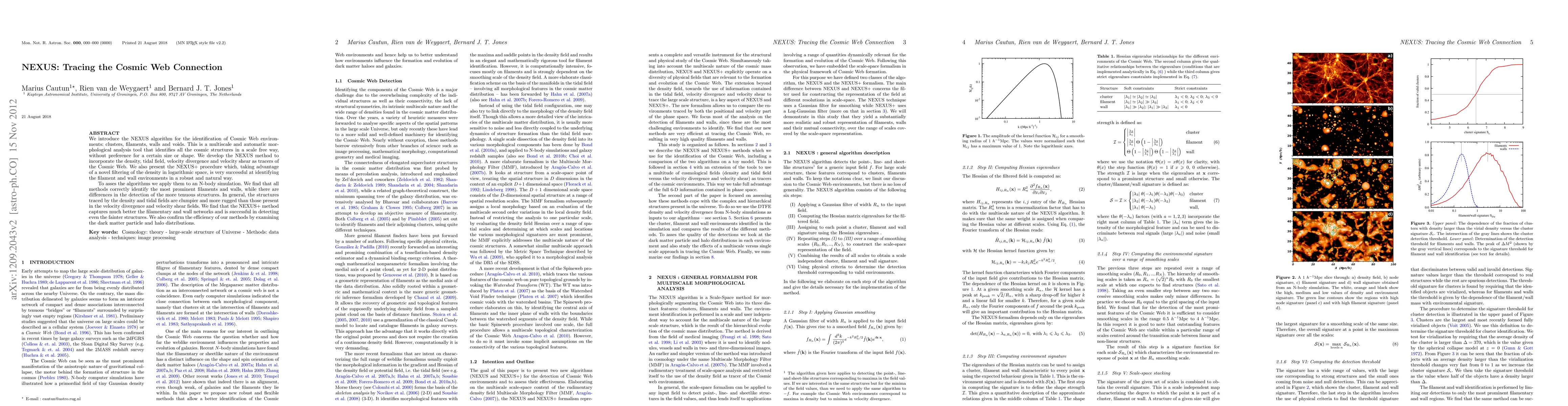 The NEXUS algorithm identifies cosmic structures like clusters, filaments, walls, and voids using multiscale morphological analysis, incorporating density, tidal field, velocity divergence, and shear. The NEXUS+ variant excels in detecting filament and wall networks, even faint structures, as validated through N-body simulations and dark matter analysis.