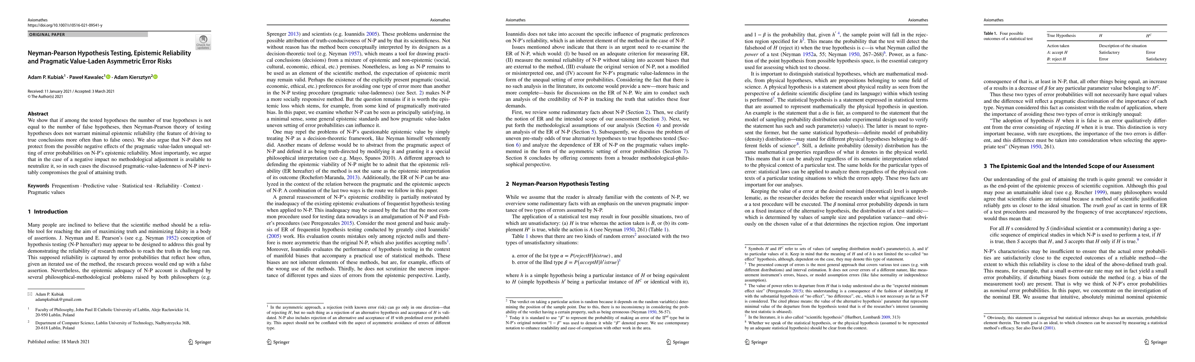 This paper critiques Neyman-Pearson hypothesis testing for lacking epistemic reliability, as it does not ensure true conclusions more often than false ones. It highlights the theory's vulnerability to pragmatic value-laden error probabilities, which compromise its reliability without any methodological remedy.