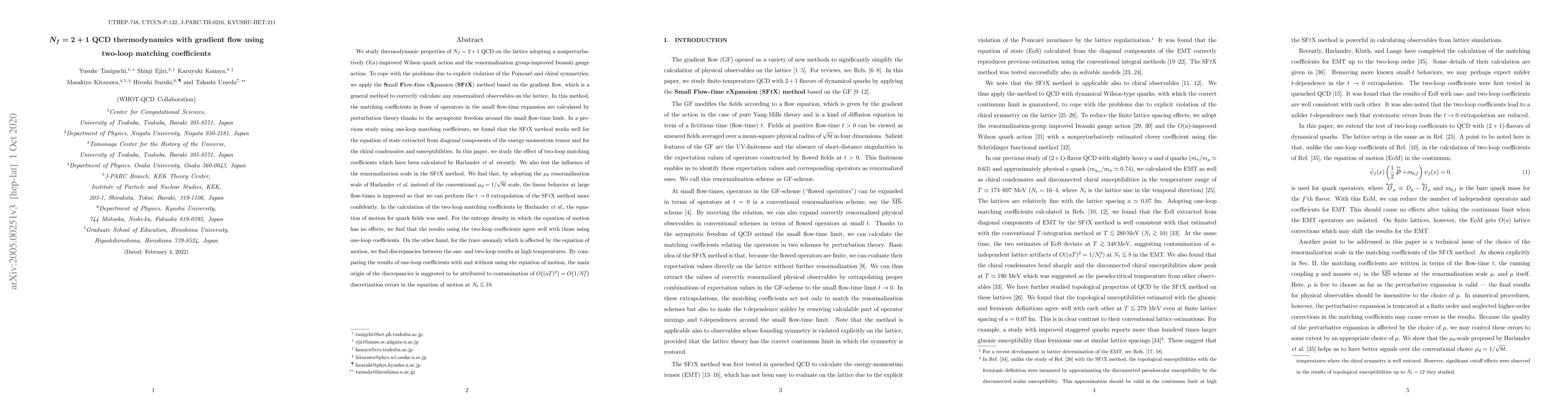 We study thermodynamic properties of Nf=2+1 QCD on the lattice adopting O(a)-improved Wilson quark action and Iwasaki gauge action. To cope with the problems due to explicit violation of the Poincare and chiral symmetries, we apply the Small Flow-time eXpansion (SFtX) method based on the gradient flow, which is a general method to correctly calculate any renormalized observables on the lattice. In this method, the matching coefficients in front of operators in the small flow-time expansion are calculated by perturbation theory. In a previous study using one-loop matching coefficients, we found that the SFtX method works well for the equation of state, chiral condensates and susceptibilities. In this paper, we study the effect of two-loop matching coefficients by Harlander et al. We also test the influence of the renormalization scale in the SFtX method. We find that, by adopting the mu_0 renormalization scale of Harlander et al. instead of the conventional mu_d=1/sqrt{8t} scale, the linear behavior at large t is improved so that we can perform the t -> 0 extrapolation of the SFtX method more confidently. In the calculation of the two-loop matching coefficients by Harlander et al., the equation of motion for quark fields was used. For the entropy density in which the equation of motion has no effects, we find that the results using the two-loop coefficients agree well with those using one-loop coefficients. On the other hand, for the trace anomaly which is affected by the equation of motion, we find discrepancies between the one- and two-loop results at high temperatures. By comparing the results of one-loop coefficients with and without using the equation of motion, the main origin of the discrepancies is suggested to be attributed to O((aT)^2)=O(1/N_t^2) discretization errors in the equation of motion at N_t =< 10.
