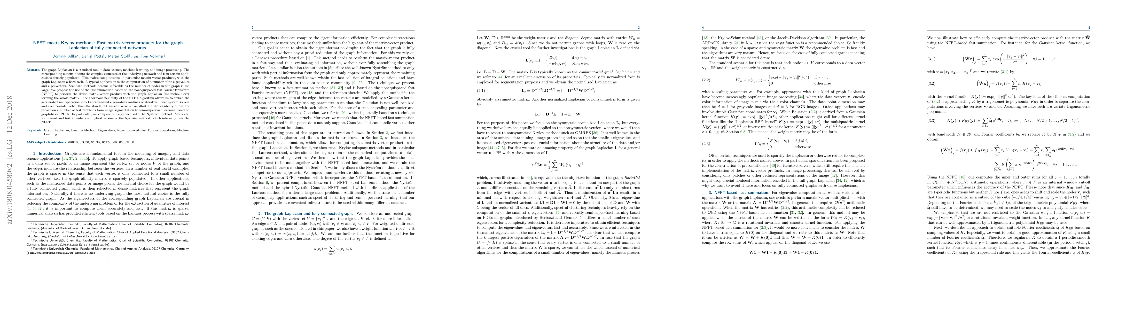 This paper proposes a new method to efficiently compute matrix-vector products with the graph Laplacian using nonequispaced fast Fourier transform (NFFT), enabling faster eigenvalue computation and solving large linear systems in network analysis.