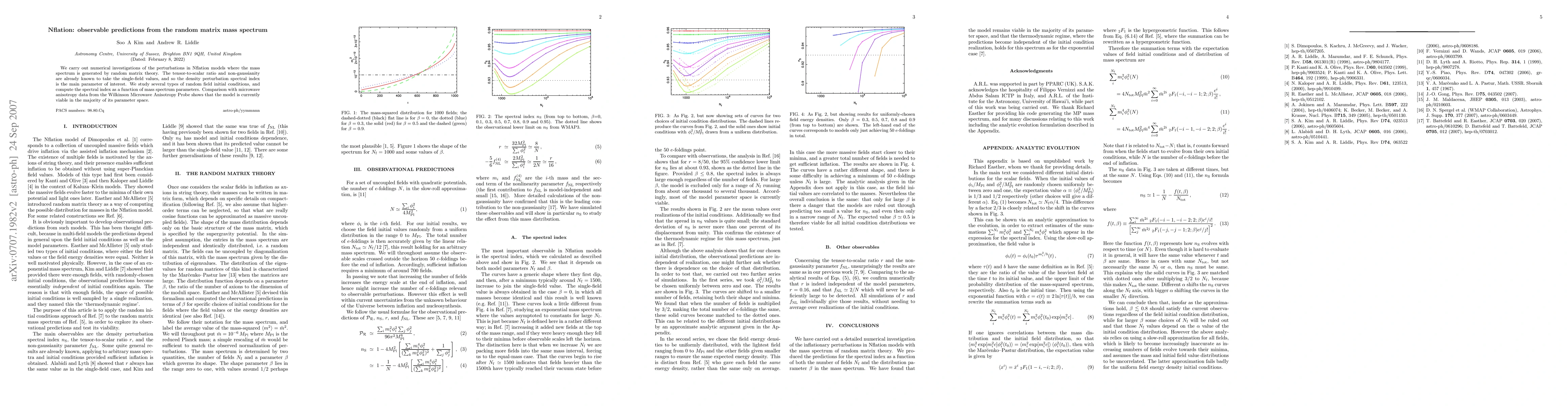 The paper presents detailed numerical investigations of inflationary perturbations in Nflation models with a mass spectrum generated by random matrix theory, producing predictions for the spectral index as a function of the number of fields (N_f) and distribution parameter (β) in the mass spectrum.