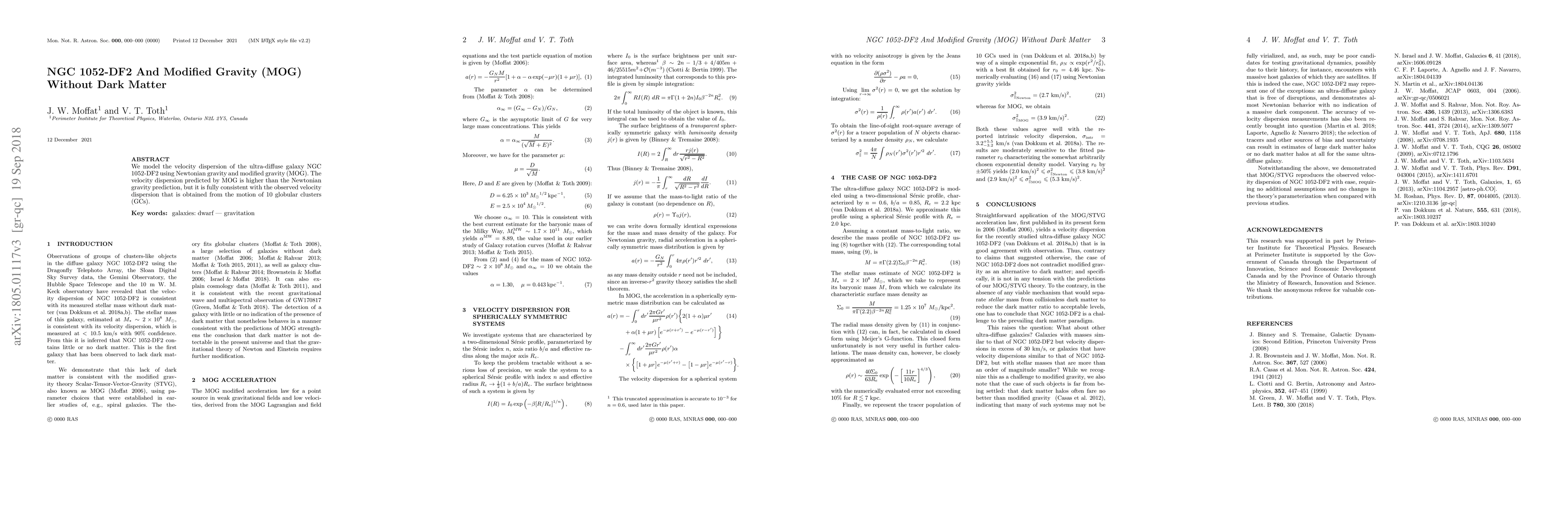 This paper models the velocity dispersion of NGC 1052-DF2 using modified gravity (MOG) instead of dark matter, finding that MOG predictions align well with observed data from globular clusters, suggesting an alternative to dark matter in explaining galactic dynamics.