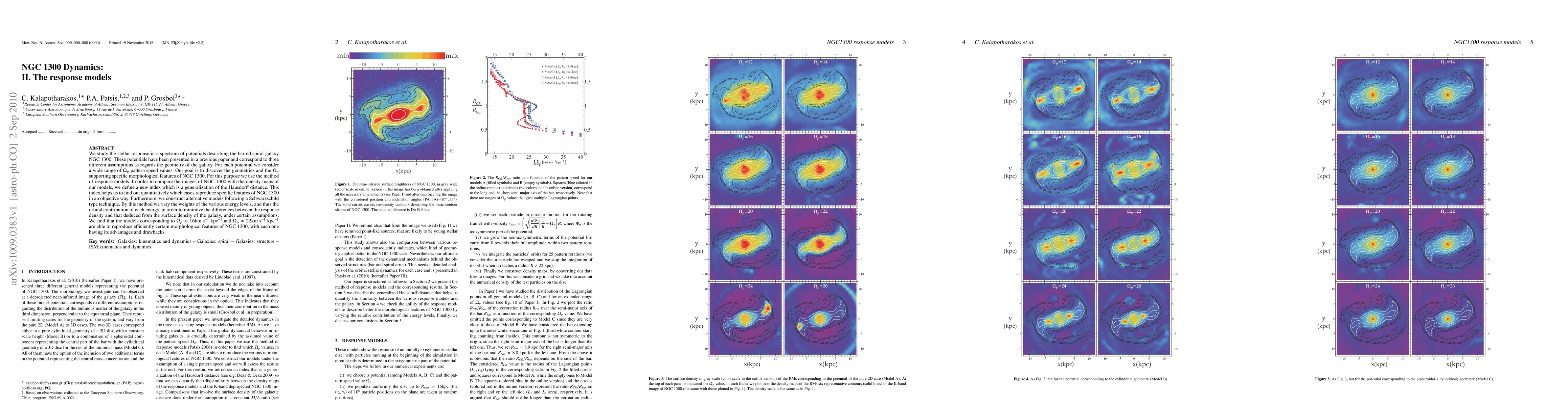We study the stellar response in a spectrum of potentials describing the barred spiral galaxy NGC 1300. These potentials have been presented in a previous paper and correspond to three different assumptions as regards the geometry of the galaxy. For each potential we consider a wide range of $\Omega_p$ pattern speed values. Our goal is to discover the geometries and the $\Omega_p$ supporting specific morphological features of NGC 1300. For this purpose we use the method of response models. In order to compare the images of NGC 1300 with the density maps of our models, we define a new index which is a generalization of the Hausdorff distance. This index helps us to find out quantitatively which cases reproduce specific features of NGC 1300 in an objective way. Furthermore, we construct alternative models following a Schwarzschild type technique. By this method we vary the weights of the various energy levels, and thus the orbital contribution of each energy, in order to minimize the differences between the response density and that deduced from the surface density of the galaxy, under certain assumptions. We find that the models corresponding to $\Omega_p\approx16$\ksk and $\Omega_p\approx22$\ksk are able to reproduce efficiently certain morphological features of NGC 1300, with each one having its advantages and drawbacks.