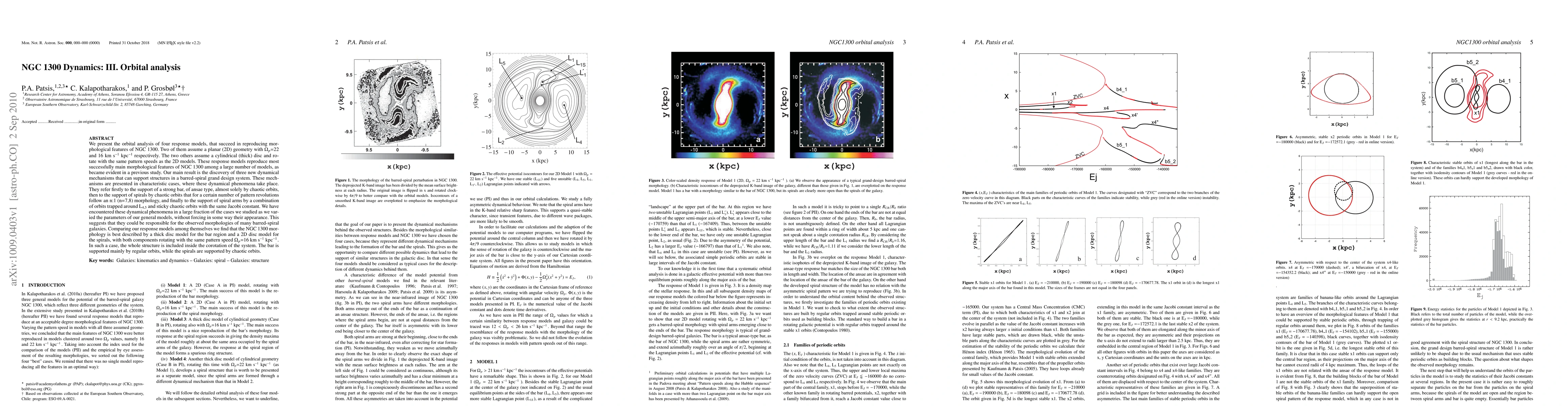 We present the orbital analysis of four response models, that succeed in reproducing morphological features of NGC 1300. Two of them assume a planar (2D) geometry with $\Omega_p$=22 and 16 \ksk respectively. The two others assume a cylindrical (thick) disc and rotate with the same pattern speeds as the 2D models. These response models reproduce most successfully main morphological features of NGC 1300 among a large number of models, as became evident in a previous study. Our main result is the discovery of three new dynamical mechanisms that can support structures in a barred-spiral grand design system. These mechanisms are presented in characteristic cases, where these dynamical phenomena take place. They refer firstly to the support of a strong bar, of ansae type, almost solely by chaotic orbits, then to the support of spirals by chaotic orbits that for a certain number of pat tern revolutions follow an n:1 (n=7,8) morphology, and finally to the support of spiral arms by a combination of orbits trapped around L$_{4,5}$ and sticky chaotic orbits with the same Jacobi constant. We have encountered these dynamical phenomena in a large fraction of the cases we studied as we varied the parameters of our general models, without forcing in some way their appearance. This suggests that they could be responsible for the observed morphologies of many barred-spiral galaxies. Comparing our response models among themselves we find that the NGC 130 0 morphology is best described by a thick disc model for the bar region and a 2D disc model for the spirals, with both components rotating with the same pattern speed $\Omega_p$=16 \ksk !. In such a case, the whole structure is included inside the corotation of the system. The bar is supported mainly by regular orbits, while the spirals are supported by chaotic orbits.