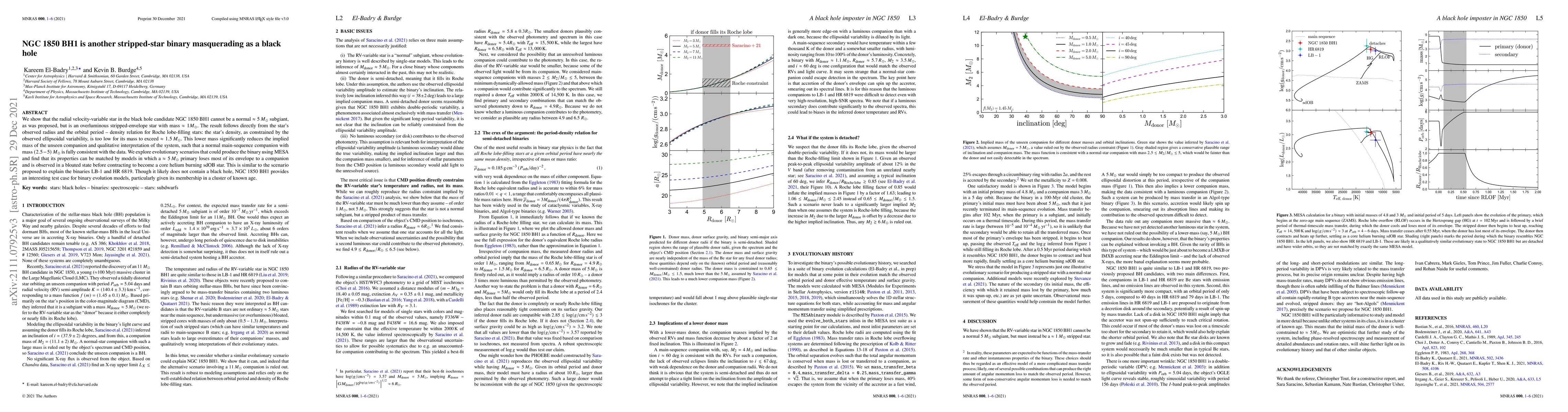 The research reveals that NGC 1850 BH1, previously thought to be a black hole candidate, is actually an overluminous stripped-star binary with a companion likely in the range of $(2.5-5)\,M_{\odot}$. This conclusion is based on the star's observed radius and density, which indicate it cannot be a normal subgiant.
