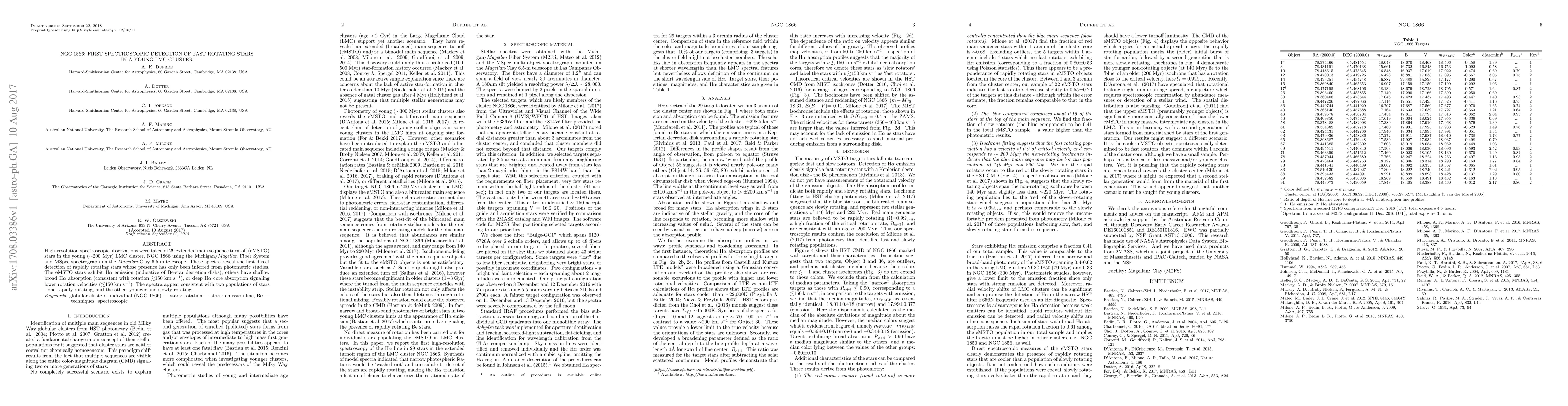 High-resolution spectroscopic observations were taken of 29 extended main sequence turn-off (eMSTO) stars in the young ($\sim$200 Myr) LMC cluster, NGC 1866 using the Michigan/Magellan Fiber System and MSpec spectrograph on the Magellan-Clay 6.5-m telescope. These spectra reveal the first direct detection of rapidly rotating stars whose presence has only been inferred from photometric studies. The eMSTO stars exhibit H-alpha emission (indicative of Be-star decretion disks), others have shallow broad H-alpha absorption (consistent with rotation $\gtrsim $150 km s$^{-1}$), or deep H-alpha core absorption signaling lower rotation velocities ($ \lesssim $150 km s$^{-1}$ ). The spectra appear consistent with two populations of stars - one rapidly rotating, and the other, younger and slowly rotating.