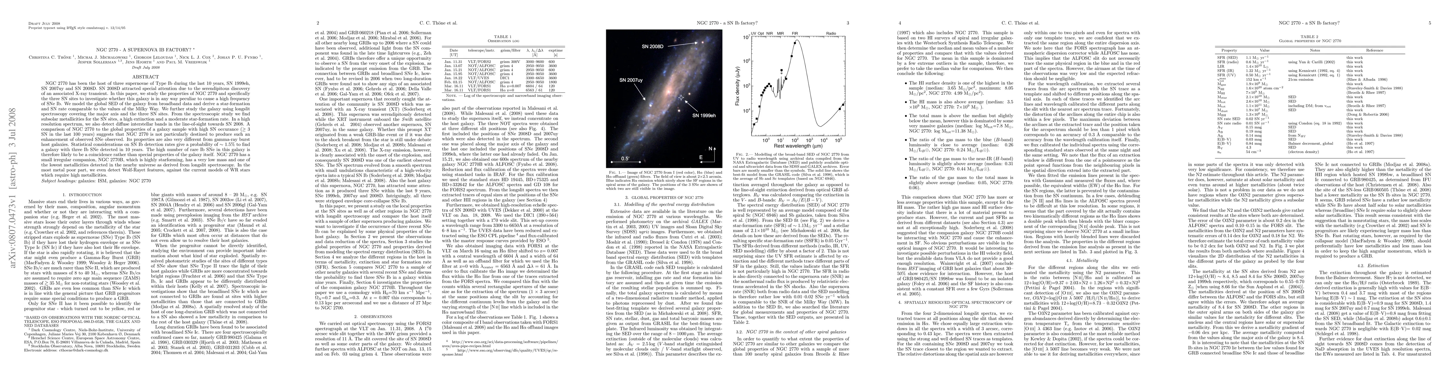 NGC 2770 has been the host of three supernovae of Type Ib during the last 10 years, SN 1999eh, SN 2007uy and SN 2008D. SN 2008D attracted special attention due to the serendipitous discovery of an associated X-ray transient. In this paper, we study the properties of NGC 2770 and specifically the three SN sites to investigate whether this galaxy is in any way peculiar to cause a high frequency of SNe Ib. We model the global SED of the galaxy from broadband data and derive a star-formation and SN rate comparable to the values of the Milky Way. We further study the galaxy using longslit spectroscopy covering the major axis and the three SN sites. From the spectroscopic study we find subsolar metallicities for the SN sites, a high extinction and a moderate star-formation rate. In a high resolution spectrum, we also detect diffuse interstellar bands in the line-of-sight towards SN 2008. A comparison of NGC 2770 to the global properties of a galaxy sample with high SN occurance (at least 3 SN in the last 100 years) suggests that NGC 2770 is not particularly destined to produce such an enhancement of observed SNe observed. Its properties are also very different from gamma-ray burst host galaxies. Statistical considerations on SN Ib detection rates give a probability of ~1.5% to find a galaxy with three Ib SNe detected in 10 years. The high number of rare Ib SNe in this galaxy is therefore likely to be a coincidence rather than special properties of the galaxy itself. NGC 2770 has a small irregular companion, NGC 2770B, which is highly starforming, has a very low mass and one of the lowest metallicities detected in the nearby universe as derived from longslit spectroscopy. In the most metal poor part, we even detect Wolf-Rayet features, against the current models of WR stars which require high metallicities.