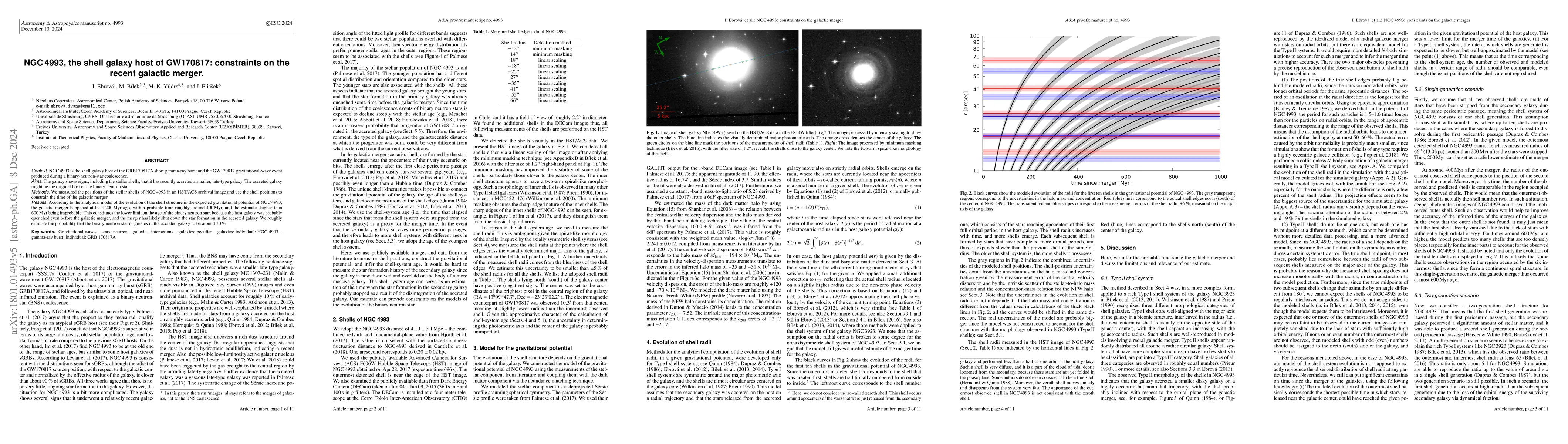 NGC 4993 is the shell galaxy host of the GRB170817A short gamma-ray burst and the GW170817 gravitational-wave event produced during a binary-neutron-star coalescence. The galaxy shows signs, including the stellar shells, that it has recently accreted a smaller, late-type galaxy. The accreted galaxy might be the original host of the binary neutron star. We measured the positions of the stellar shells of NGC 4993 in an HST/ACS archival image and use the shell positions to constrain the time of the galactic merger. According to the analytical model of the evolution of the shell structure in the expected gravitational potential of NGC 4993, the galactic merger happened at least 200 Myr ago, with a probable time roughly around 400 Myr and the estimates higher than 600 Myr being improbable. This constitutes the lower limit on the age of the binary neutron star, because the host galaxy was probably quenched even before the galactic merger, and the merger has likely shut down the star formation in the accreted galaxy. We roughly estimate the probability that the binary neutron star originates in the accreted galaxy to be around 30%.