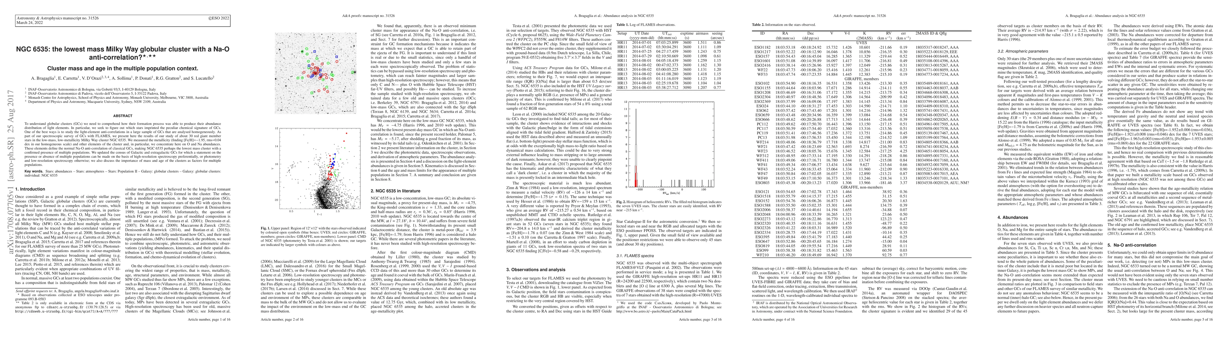To understand globular clusters (GCs) we need to comprehend how their formation process was able to produce their abundance distribution of light elements. In particular, we seek to figure out which stars imprinted the peculiar chemical signature of GCs. One of the best ways is to study the light-element anti-correlations in a large sample of GCs that are analysed homogeneously. As part of our spectroscopic survey of GCs with FLAMES, we present here the results of our study of about 30 red giant member stars in the low-mass, low-metallicity Milky Way cluster NGC 6535. We measured the metallicity (finding [Fe/H]=-1.95, rms=0.04 dex in our homogeneous scale) and other elements of the cluster and, in particular, we concentrate here on O and Na abundances. These elements define the normal Na-O anti-correlation of classical GCs, making NGC 6535 perhaps the lowest mass cluster with a confirmed presence of multiple populations. We updated the census of Galactic and extragalactic GCs for which a statement on the presence or absence of multiple populations can be made on the basis of high-resolution spectroscopy preferentially, or photometry and low-resolution spectroscopy otherwise; we also discuss the importance of mass and age of the clusters as factors for multiple populations.
