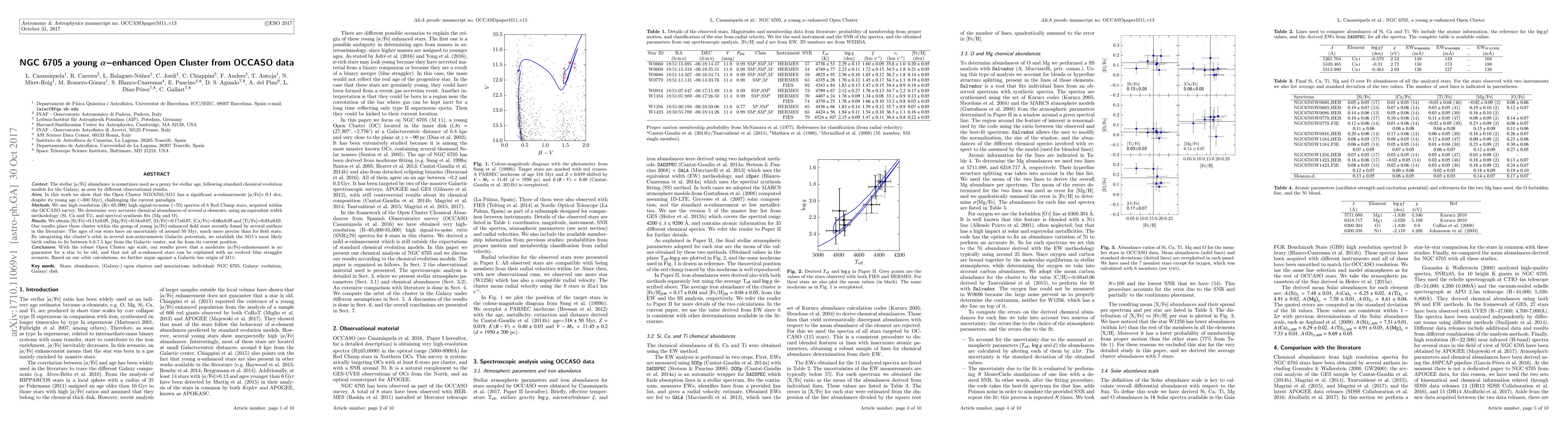 The stellar [$\alpha$/Fe] abundance is sometimes used as a proxy for stellar age, following standard chemical evolution models for the Galaxy, as seen by different observational results. In this work we show that the Open Cluster NGC6705/M11 has a significant $\alpha$-enhancement [$\alpha$/Fe]$>0.1$ dex, despite its young age ($\sim$300 Myr), challenging the current paradigm. We use high resolution (R$>65,000$) high signal-to-noise ($\sim$70) spectra of 8 Red Clump stars, acquired within the OCCASO survey. We determine very accurate chemical abundances of several $\alpha$ elements, using an equivalent width methodology (Si, Ca and Ti), and spectral synthesis fits (Mg and O). We obtain [Si/Fe]=$0.13\pm0.05$, [Mg/Fe]=$0.14\pm0.07$, [O/Fe]=$0.17\pm0.07$, [Ca/Fe]=$0.06\pm0.05$ and [Ti/Fe]=$0.03\pm0.03$. Our results place these cluster within the group of young [$\alpha$/Fe]-enhanced field stars recently found by several authors in the literature. The ages of our stars have an uncertainty of around 50 Myr, much more precise than for field stars. By integrating the cluster's orbit in several non-axisymmetric Galactic potentials, we establish the M11's most likely birth radius to lie between 6.8-7.5 kpc from the Galactic center, not far from its current position. With the robust Open Cluster age scale, our results prove that a moderate [$\alpha$/Fe]-enhancement is no guarantee for a star to be old, and that not all $\alpha$-enhanced stars can be explained with an evolved blue straggler scenario. Based on our orbit calculations, we further argue against a Galactic bar origin of M11.