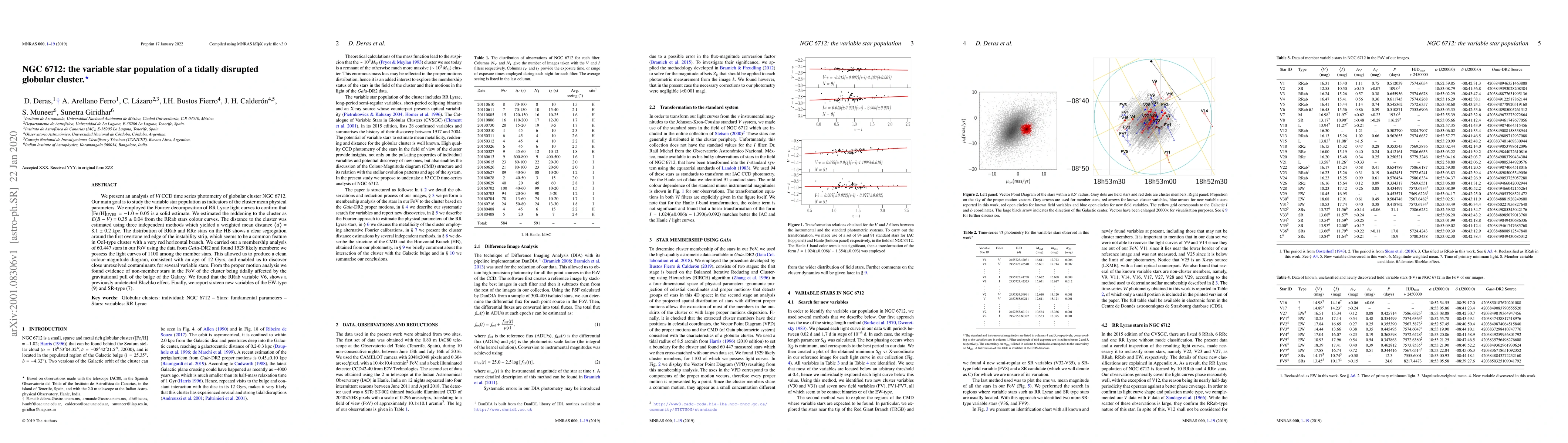 This paper analyzes NGC 6712's variable star population using CCD photometry, confirming its metallicity and estimating its distance, while identifying 1529 likely cluster members. It reveals tidal disruption evidence and discovers new variable stars, including a Blazhko effect in RRab star V6.