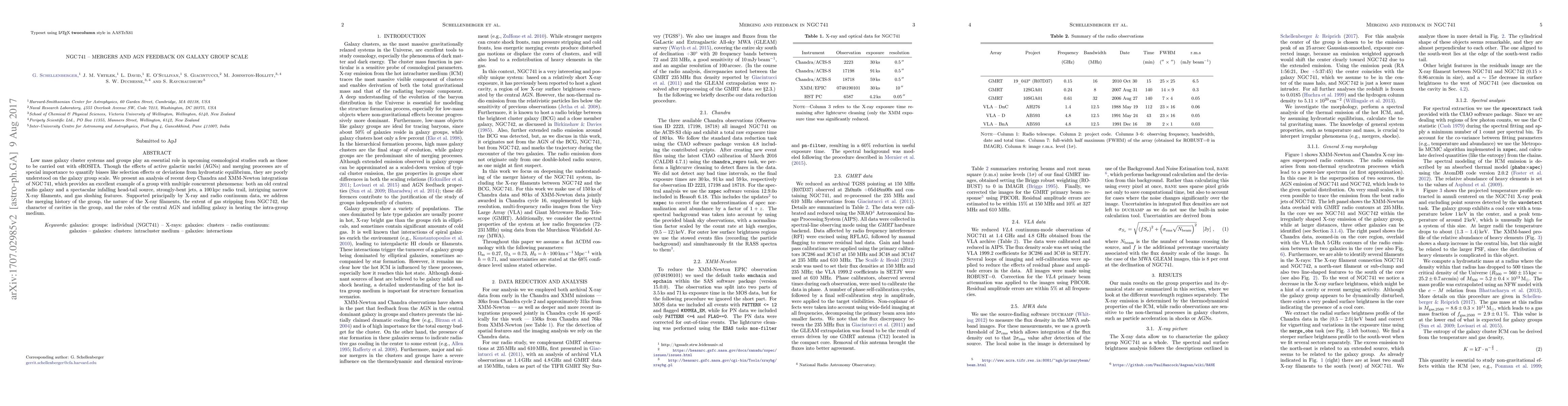 This paper analyzes NGC 741, a galaxy group with multiple merging phenomena and active galactic nuclei (AGN) effects, using deep Chandra and XMM-Newton data. It investigates the group's merging history, the nature of X-ray filaments, gas stripping, and the roles of AGN and infalling galaxies in heating the intra-group medium.