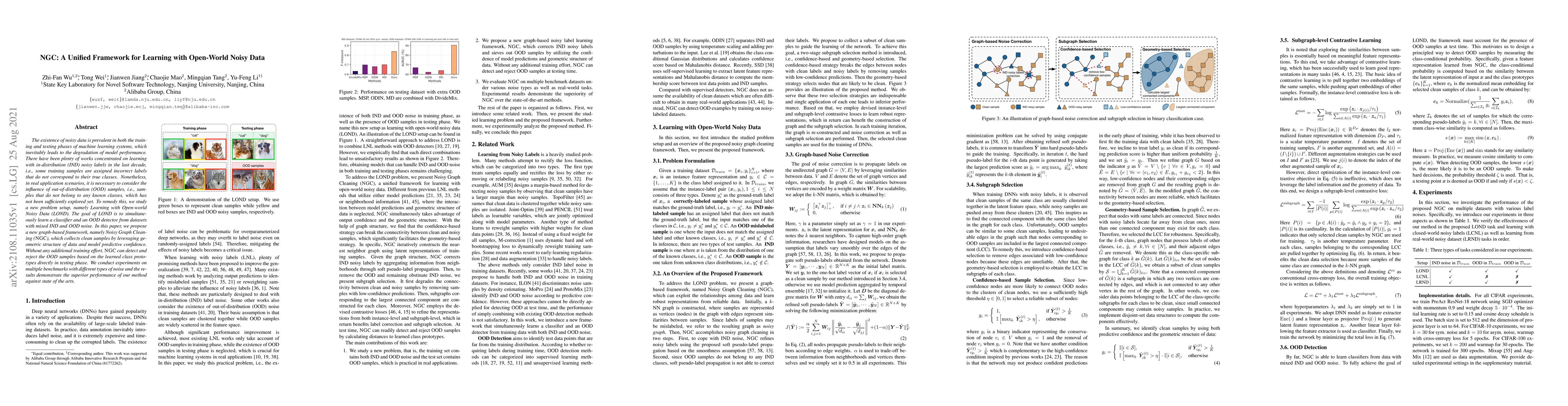 This paper proposes a new framework, Noisy Graph Cleaning (NGC), to learn from open-world noisy data by detecting out-of-distribution samples without additional training effort.