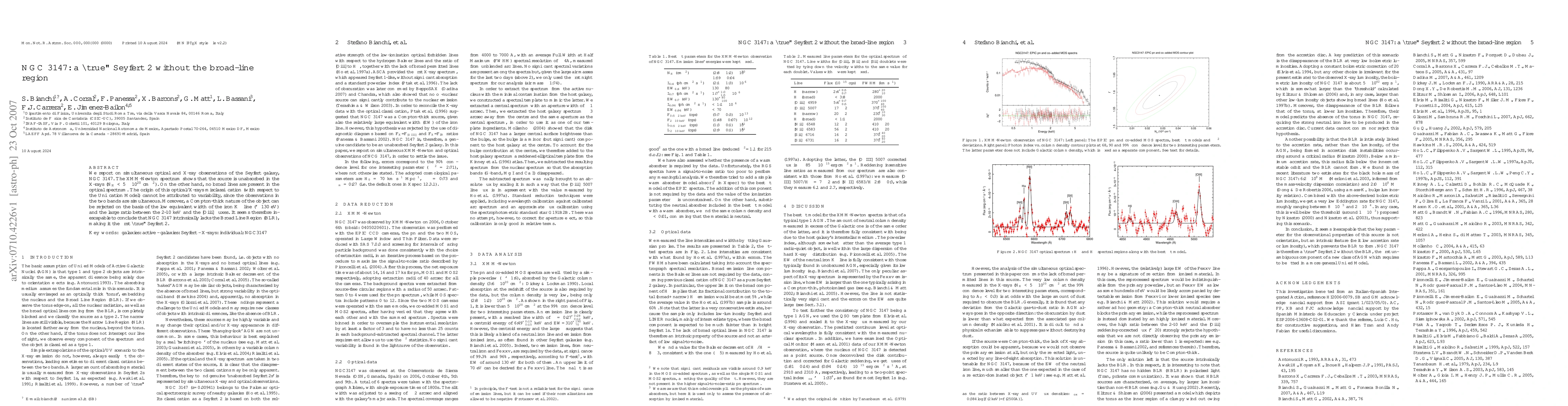 NGC3147 is a Seyfert 2 galaxy that lacks a broad-line region, as observed through simultaneous optical and X-ray data, making it the first confirmed 'true' Seyfert 2.