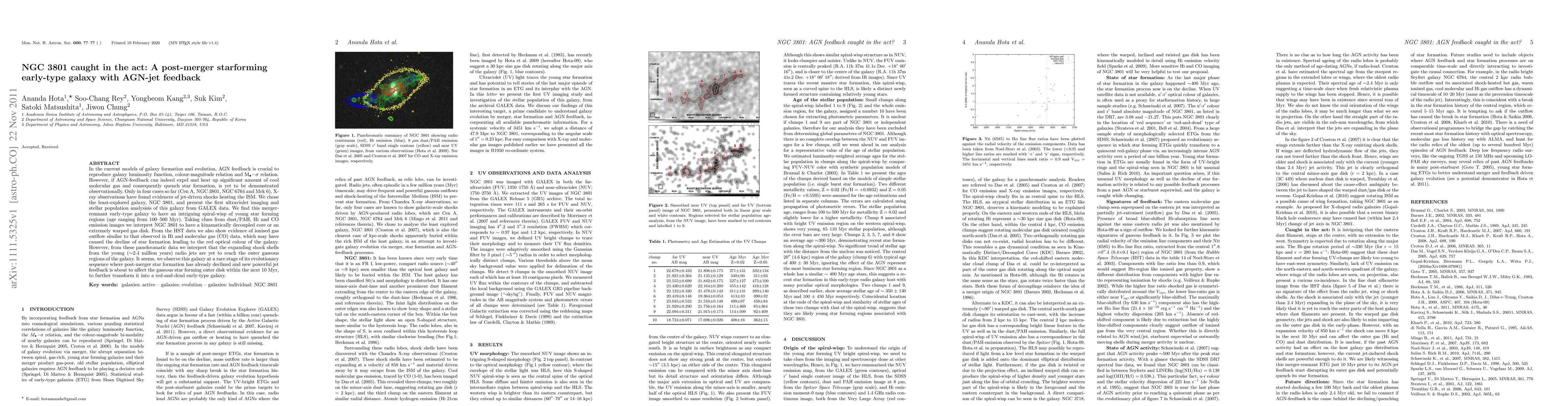 In the current models of galaxy formation and evolution, AGN feedback is crucial to reproduce galaxy luminosity function, colour-magnitude relation and M-sigma relation. However, if AGN-feedback can indeed expel and heat up significant amount of cool molecular gas and consequently quench star formation, is yet to be demonstrated observationally. Only in four cases so far (Cen A, NGC 3801, NGC 6764 and Mrk 6), X-ray observations have found evidences of jet-driven shocks heating the ISM. We chose the least-explored galaxy, NGC 3801, and present the first ultraviolet imaging and stellar population analysisis of this galaxy from GALEX data. We find this merger-remnant early-type galaxy to have an intriguing spiral-wisp of young star forming regions (age ranging from 100--500 Myr). Taking clues from dust/PAH, HI and CO emission images we interpret NGC 3801 to have a kinamatically decoupled core or an extremely warped gas disk. From the HST data we also show evidence of ionised gas outflow similar to that observed in HI and molecular gas (CO) data, which may have caused the decline of star formation leading to the red optical colour of the galaxy. However, from these panchromatic data we interpret that the expanding shock shells from the young ($\sim$2.4 million years) radio jets are yet to reach the outer gaseous regions of the galaxy. It seems, we observe this galaxy at a rare stage of its evolutionary sequence where post-merger star formation has already declined and new powerful jet feedback is about to affect the gaseous star forming outer disk within the next 10 Myr, to further transform it into a red-and-dead early-type galaxy.