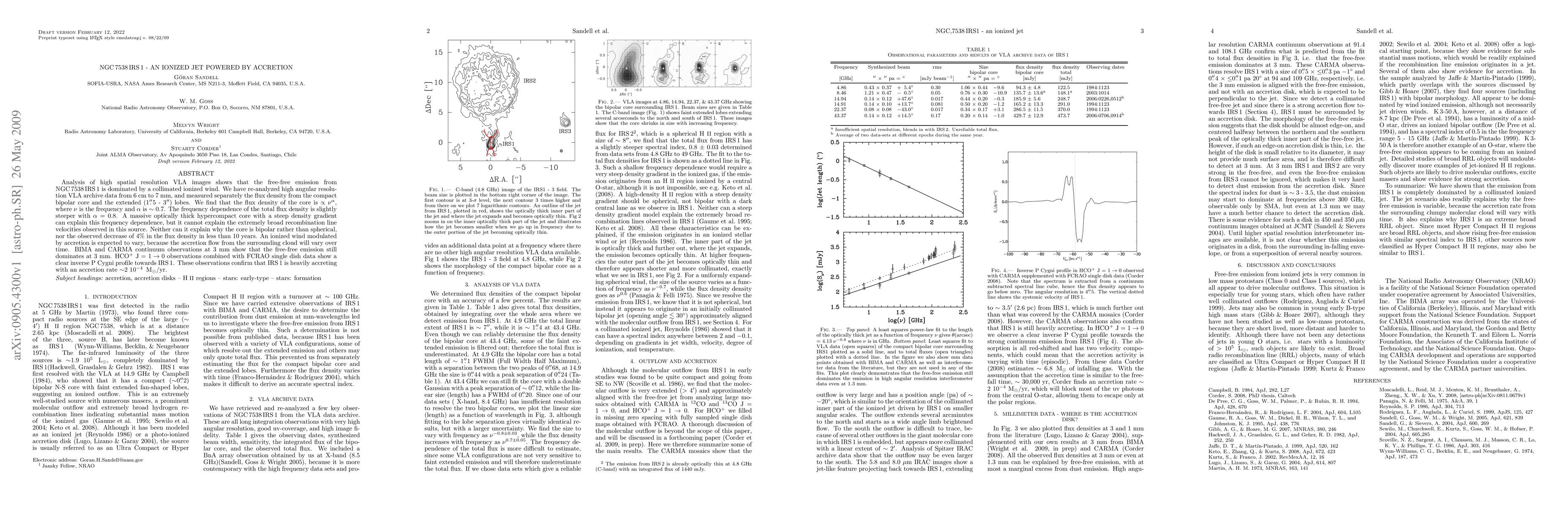 The paper presents a detailed analysis of VLA archive data, revealing the dominance of free-free emission from a collimated ionized wind in NGC7538 IRS1, and supports the accretion-powered jet model.