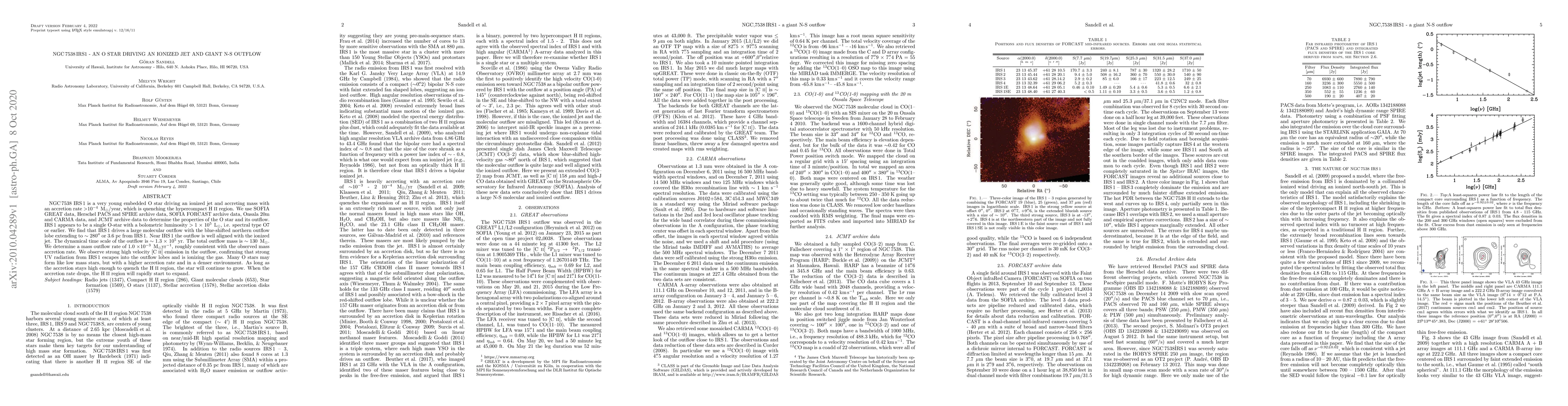 The research on NGC 7538 IRS 1 reveals a young O star driving an ionized jet and molecular outflow. Utilizing data from various sources, it's determined that IRS 1 is a single O-star with high luminosity, powering a 3.6 pc long outflow with a mass of ~130 Msun. The study confirms strong UV radiation from IRS 1 ionizes the outflow gas, suggesting high-accretion rate O-star formation similar to low-mass stars but in denser environments.