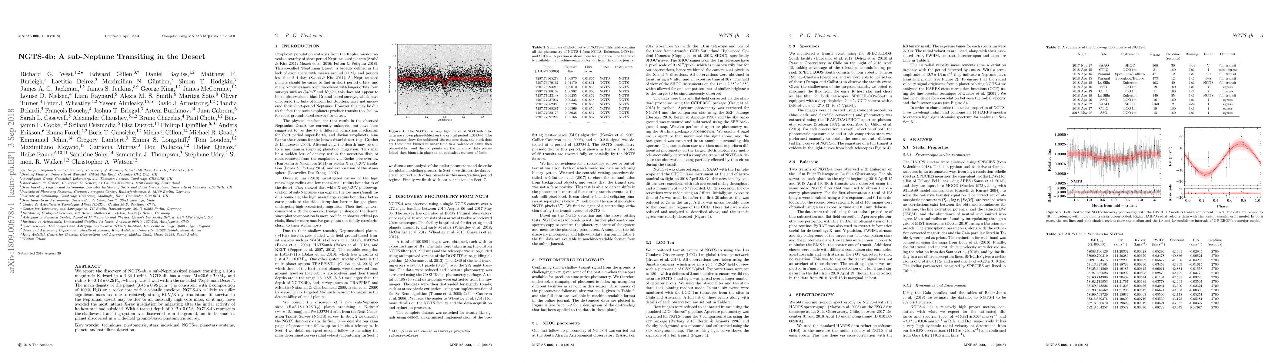 NGTS-4b is a sub-Neptune-sized planet transiting a K-dwarf star, characterized by a mass of 20.6 M_E and a radius of 3.18 R_E, fitting within the Neptunian Desert. Its high core mass or post-migration scenario may explain its survival amidst strong stellar irradiation.