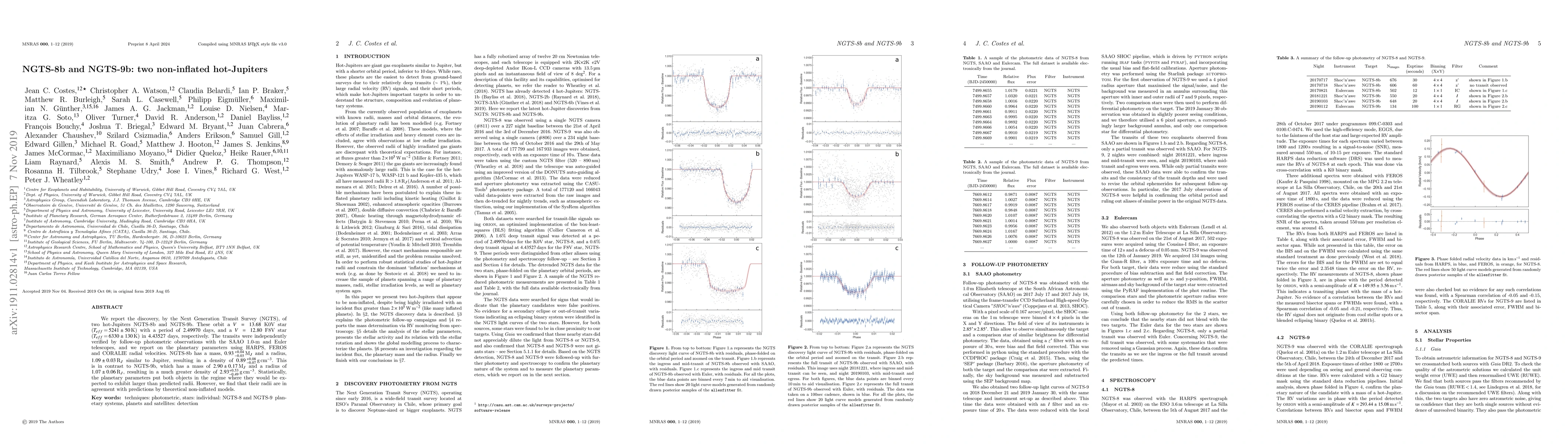 The Next Generation Transit Survey (NGTS) discovered two non-inflated hot-Jupiters, NGTS-8b and NGTS-9b, orbiting different stars. NGTS-8b has a mass and radius similar to Jupiter, while NGTS-9b is more massive but has a comparable radius, indicating both planets defy typical radius inflation trends.