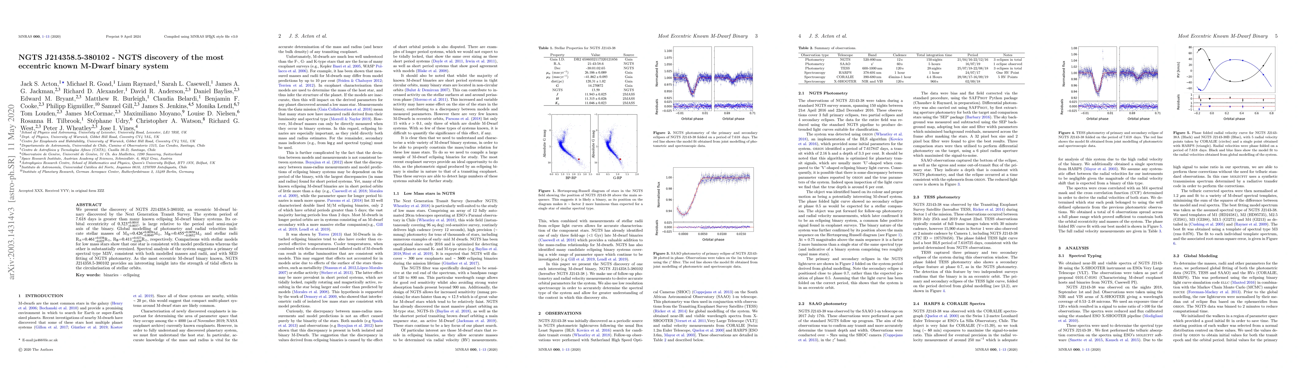 NGTS J214358.5-380102, discovered by the Next Generation Transit Survey, is an eccentric M-dwarf binary with an orbital eccentricity of 0.323, making it the most eccentric known eclipsing M-dwarf binary. Its unique characteristics provide insights into tidal effects in stellar orbits.
