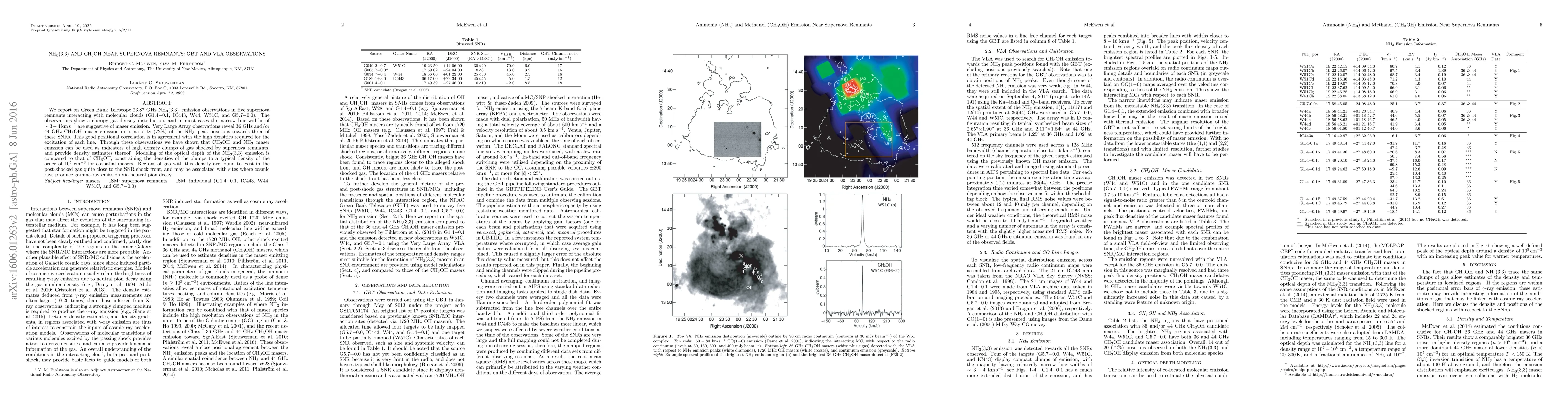 This study uses NH$_3$(3,3) and CH$_3$OH maser emission observations to investigate gas density in five supernova remnants. The findings suggest high-density clumps, with typical densities of $10^5$~cm$^{-3}$, near the shock fronts, indicating potential sites for cosmic ray-induced gamma-ray emission.