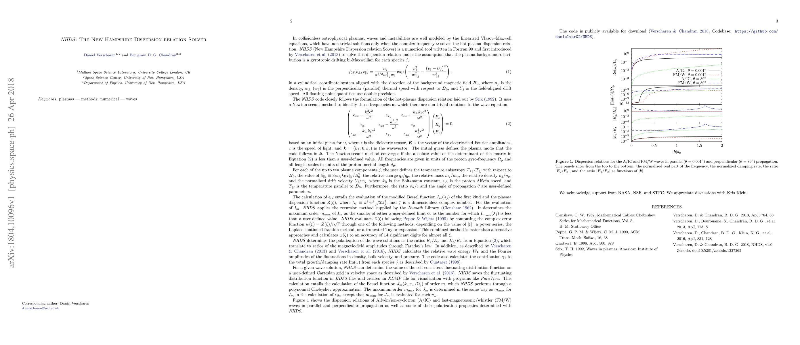 The New Hampshire Dispersion Relation Solver (NHDS) is a tool for simulating plasma behavior, with its code available for download on GitHub. The solver's capabilities include calculating dispersion relations, which are crucial in understanding plasma stability.