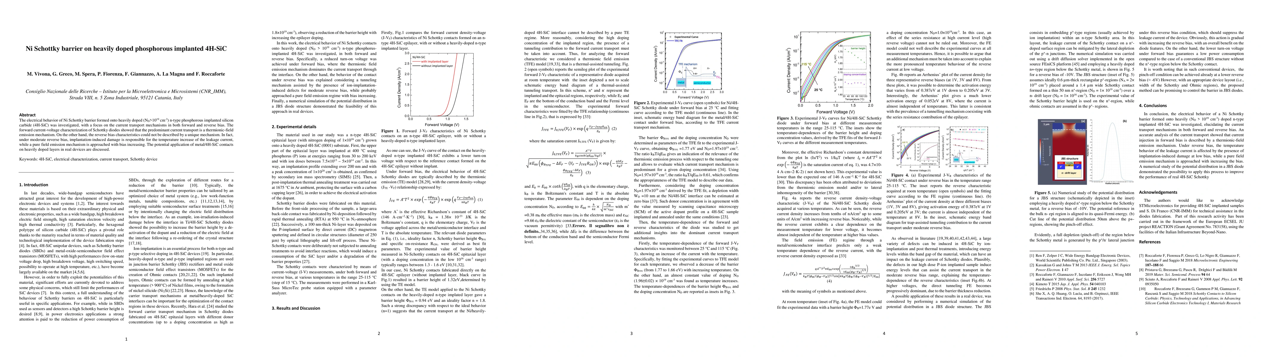 This paper investigates the electrical behavior of Ni Schottky barriers on heavily doped phosphorous implanted 4H-SiC, finding that forward current transport follows a thermionic-field emission mechanism, while reverse bias leakage current involves both implantation-induced damage and field emission, with implications for device applications.